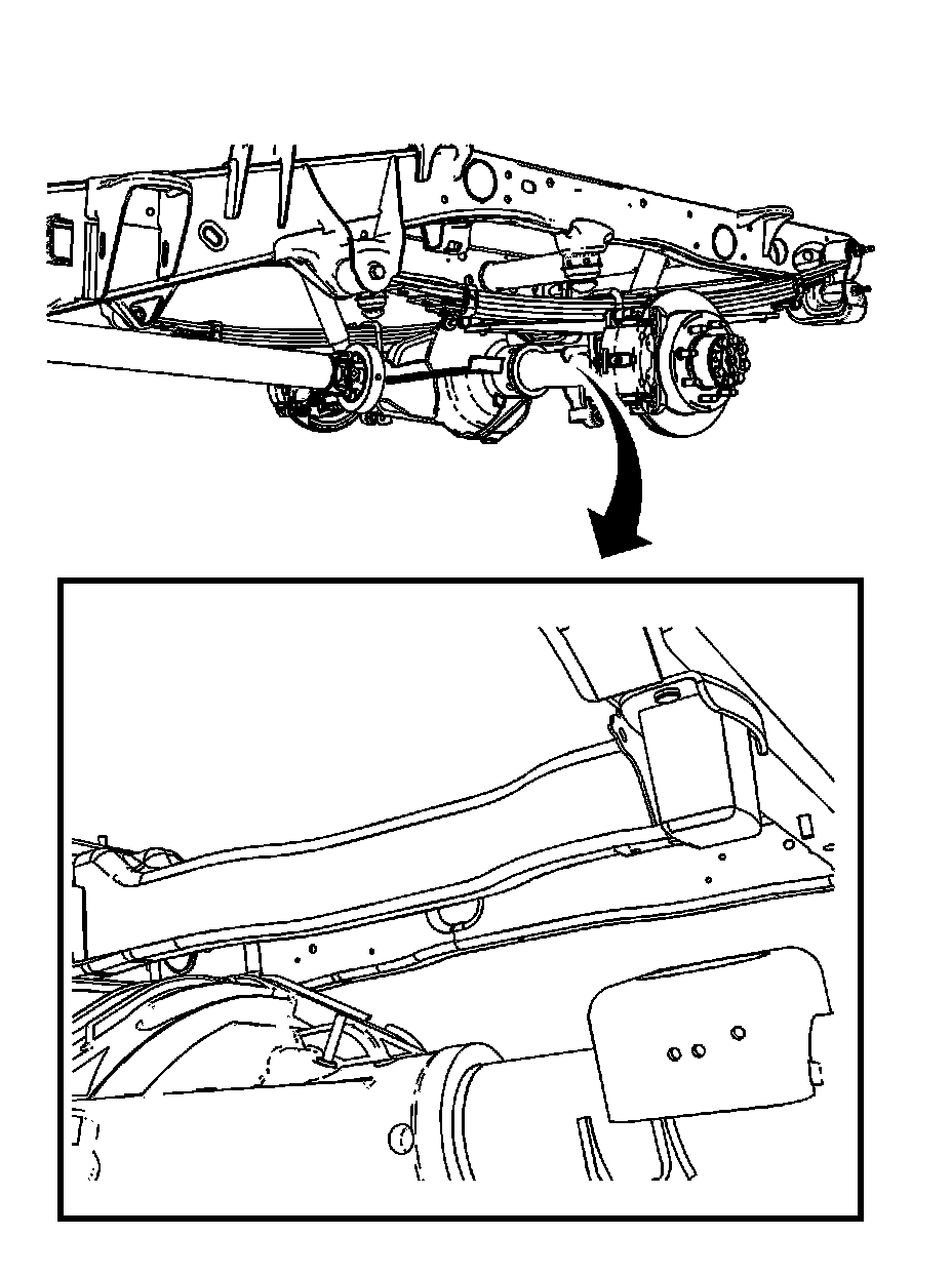 5. For the 2500/3500 Sierra/Silverado pick up trucks, with press in jounce bumpers, measure the (D) height from the jounce bumper cup to the rear axle pad (shown above). For trucks equipped with bolt on jounce bumpers, measure the (D) height from the jounce bumper outboard flange to the rear axle pad (not shown). Refer to Trim Height Specifications Trim Height Specifications.