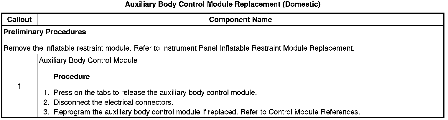 Auxiliary Body Control Module Replacement (Domestic)