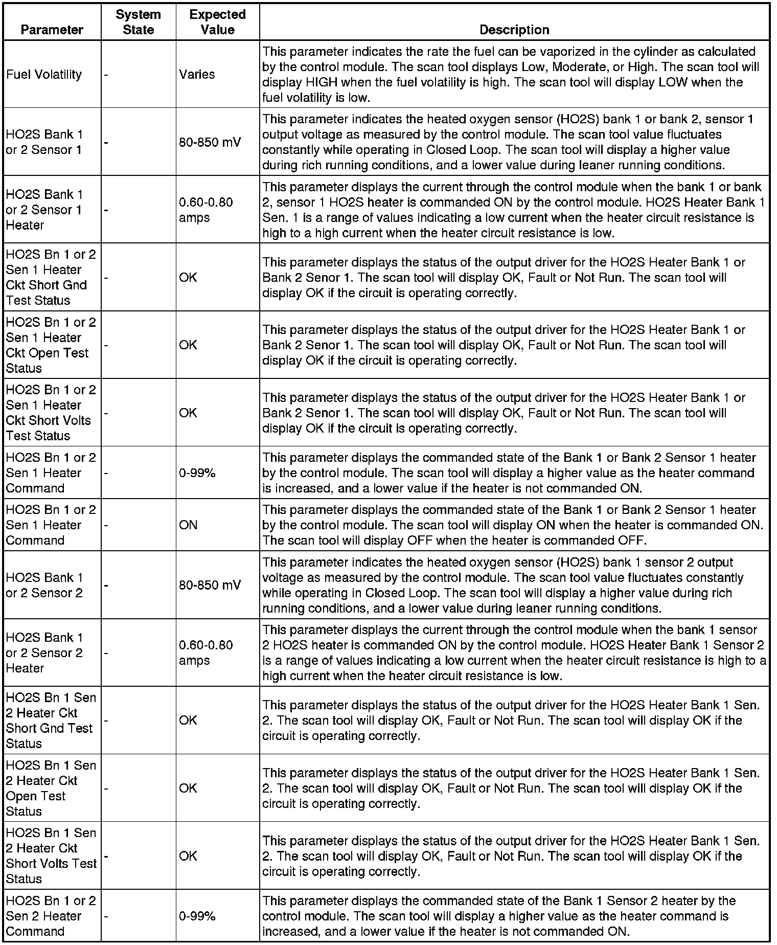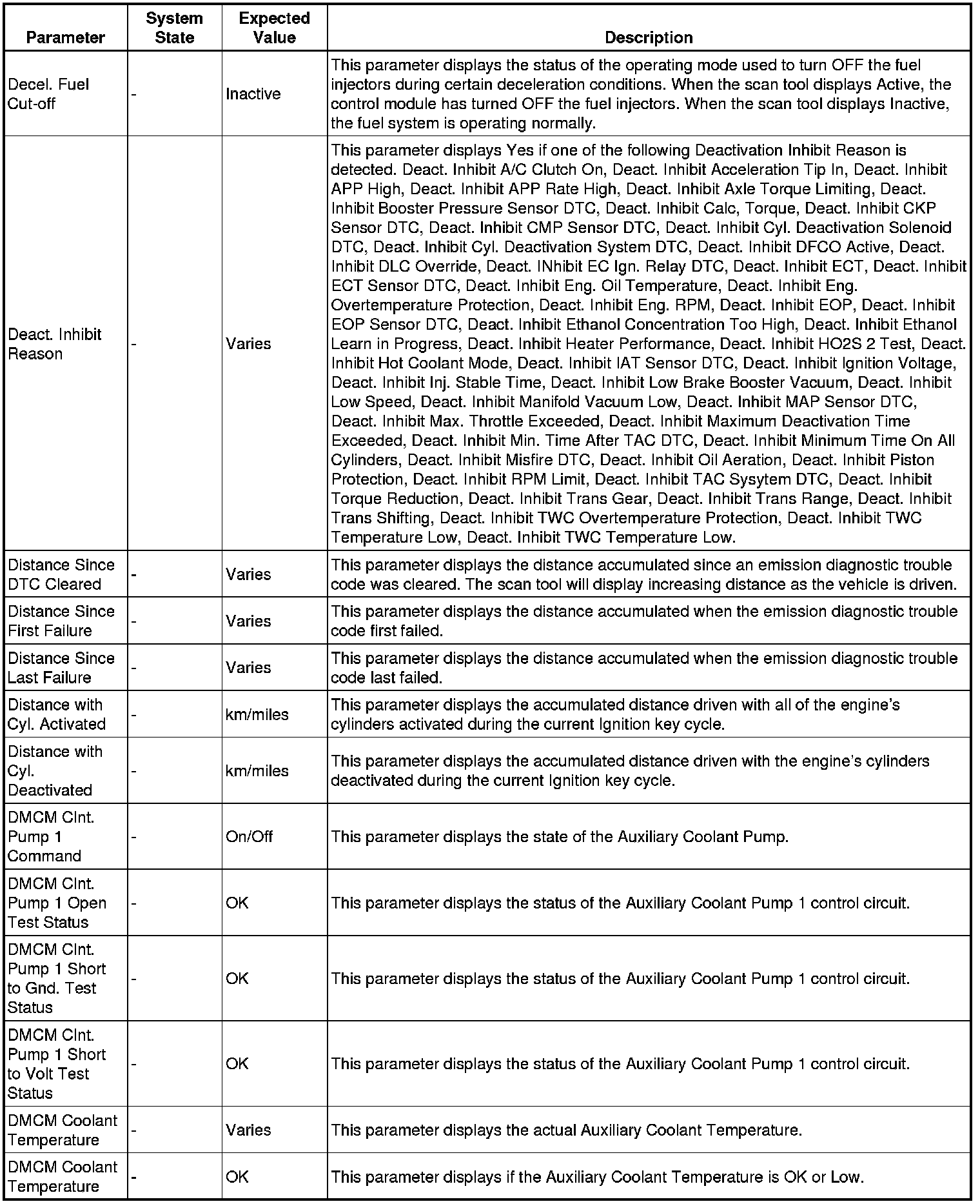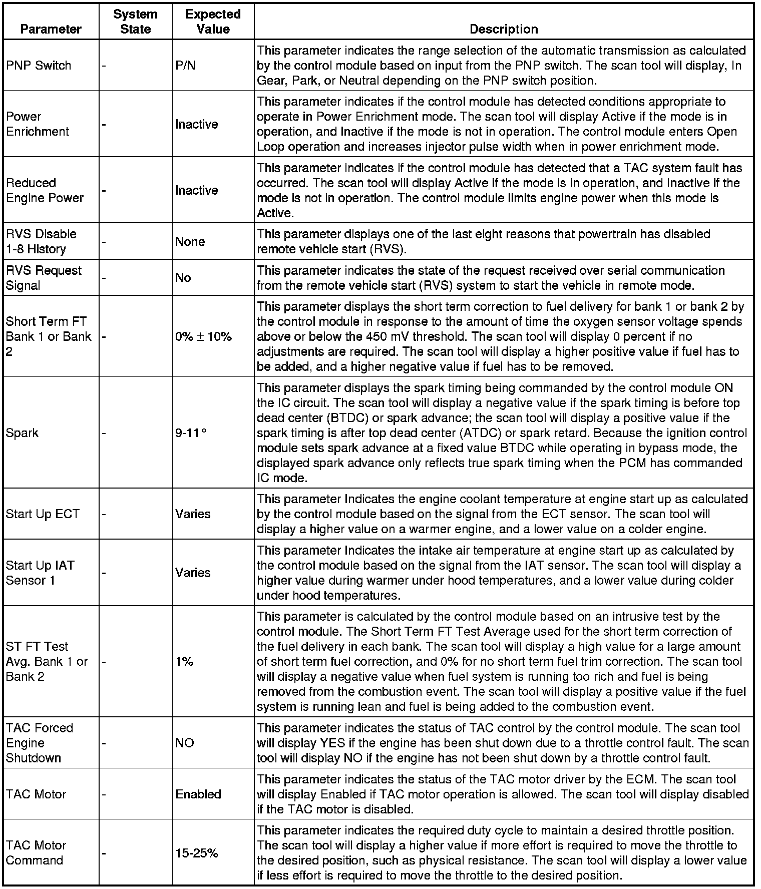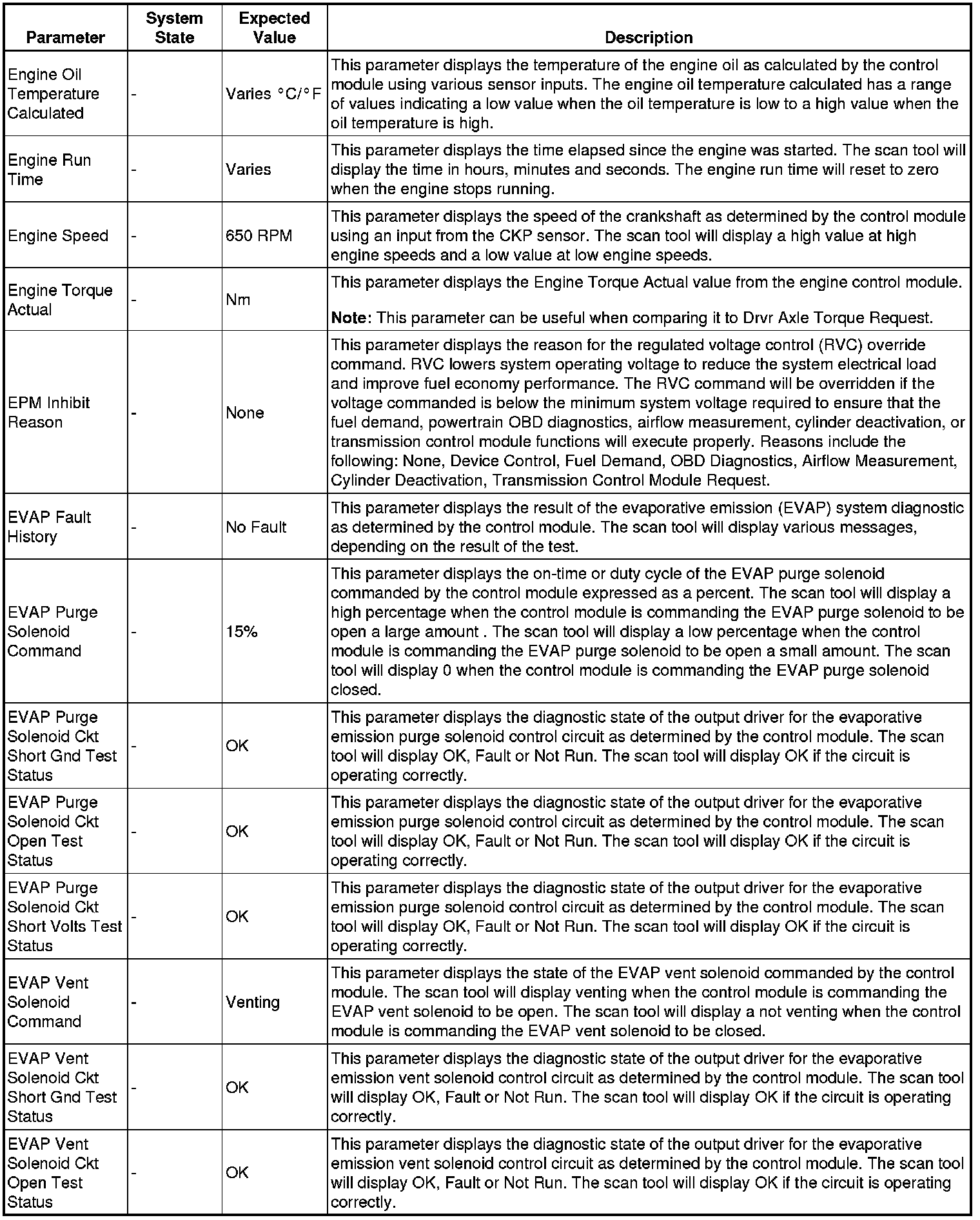 The Engine Control Module Scan Tool Data List contains all engine-related parameters that are available on the scan tool. The list is arranged in alphabetical order. A given parameter may appear in any one of the data lists, and in some cases may appear more than once, or in more than one data list in order to group certain related parameters together.