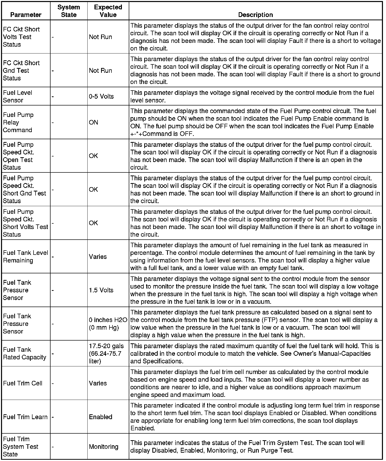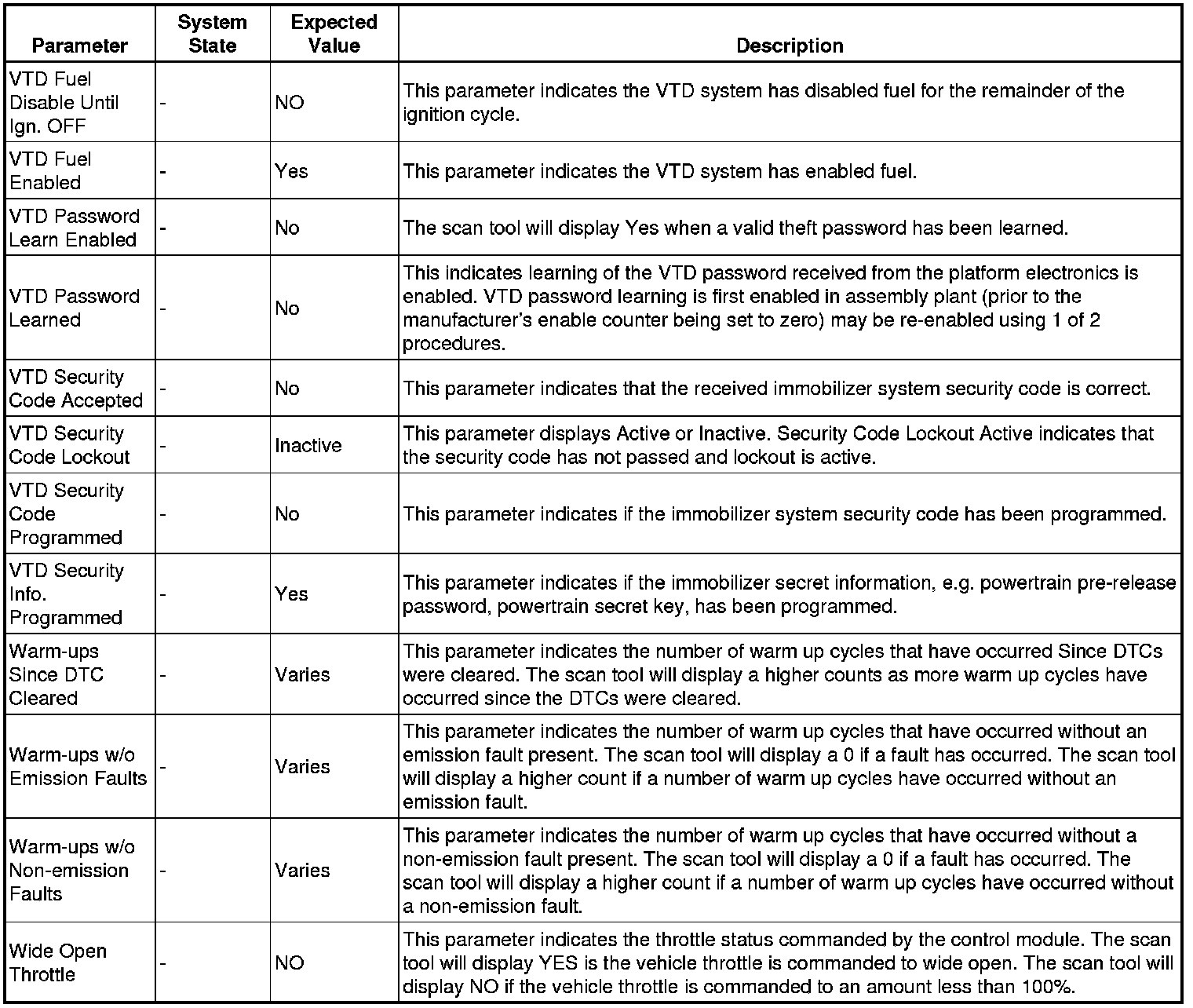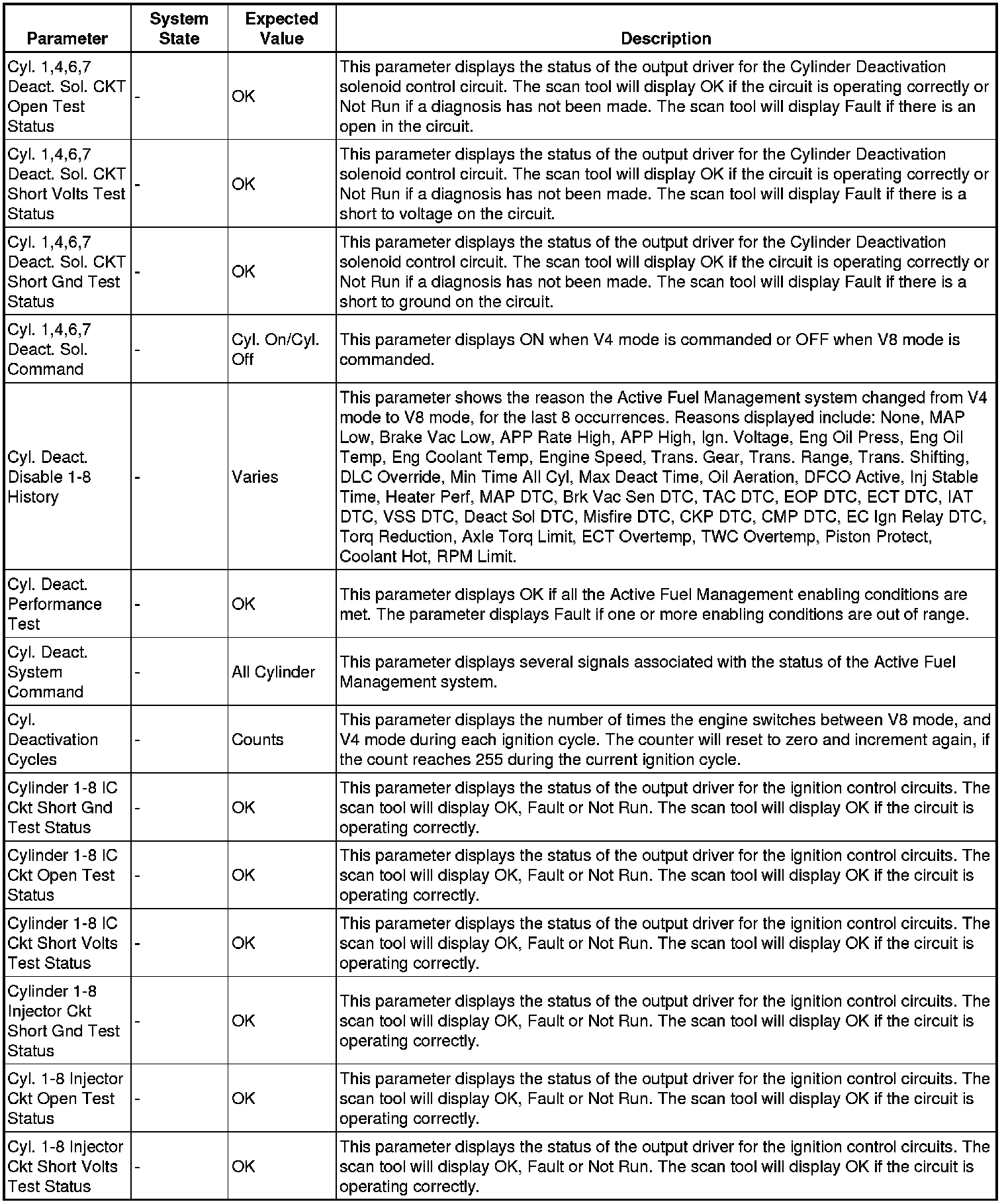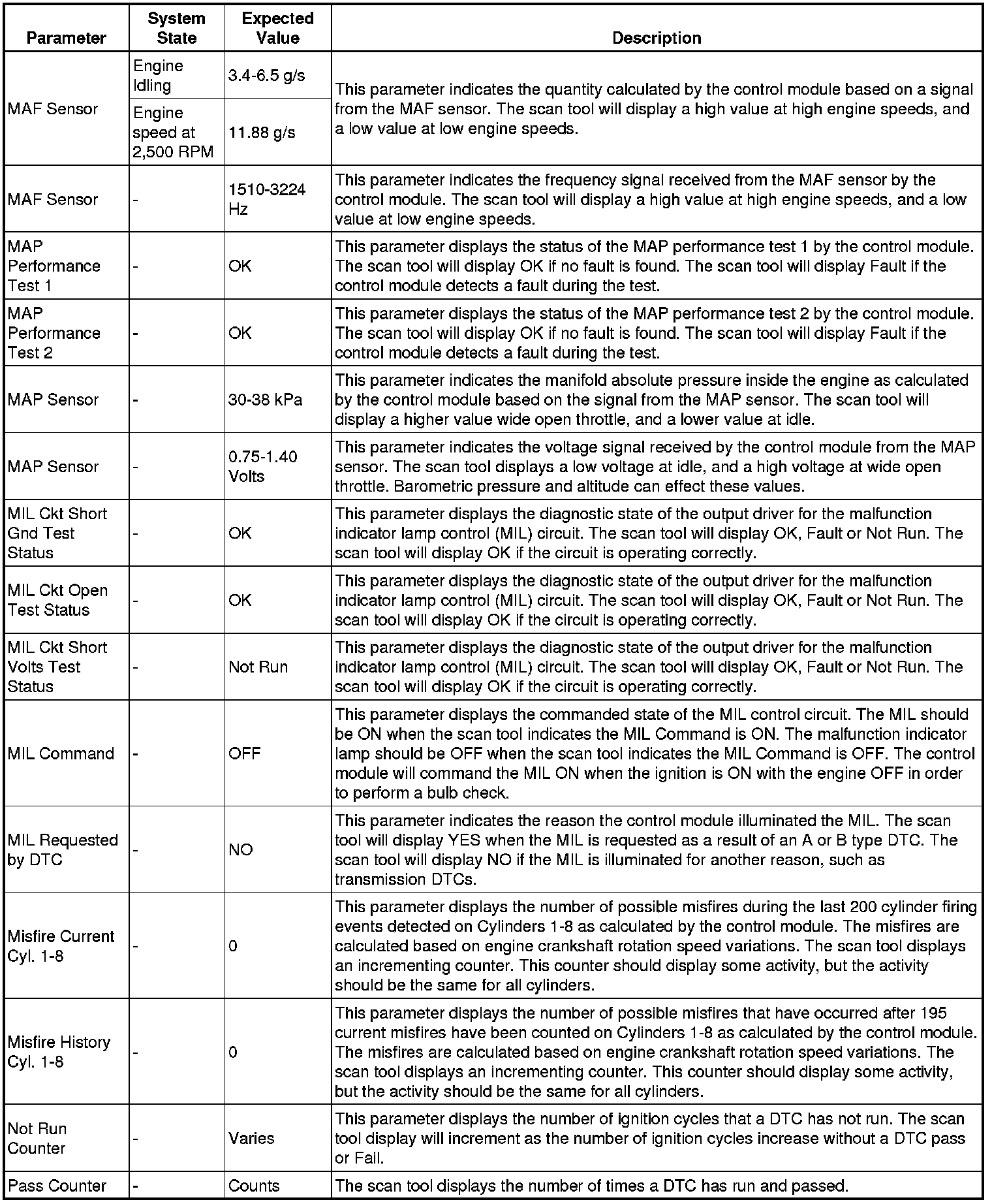 The Engine Control Module Scan Tool Data List contains all engine-related parameters that are available on the scan tool. The list is arranged in alphabetical order. A given parameter may appear in any one of the data lists, and in some cases may appear more than once, or in more than one data list in order to group certain related parameters together.