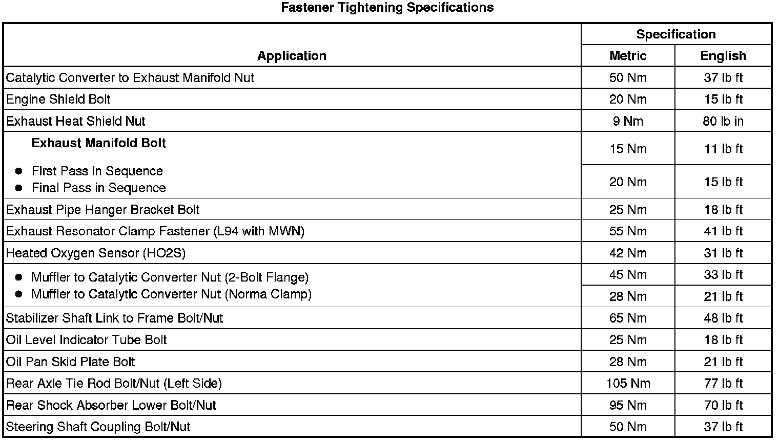 Fastener Tightening Specifications