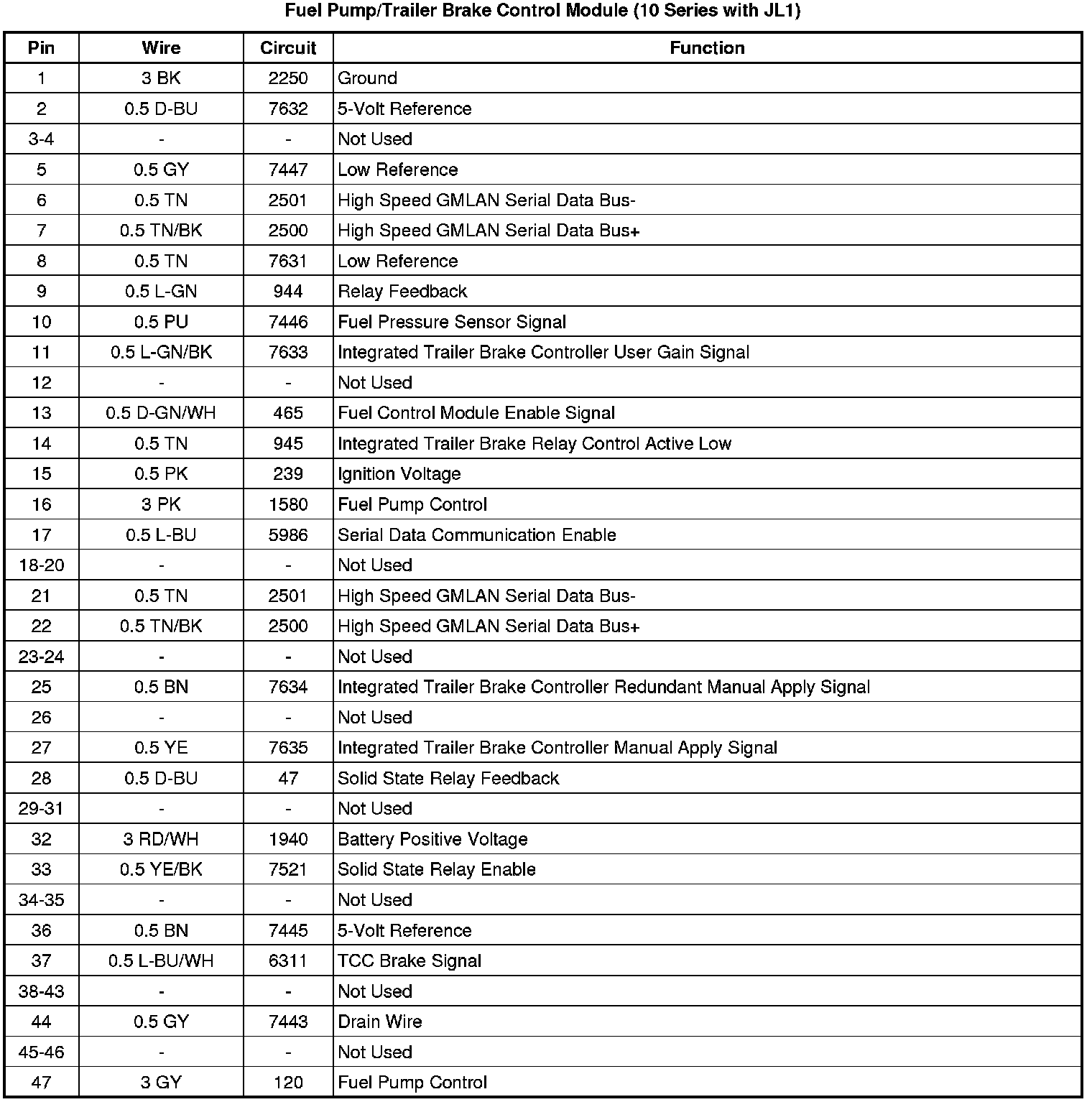 Fuel Pump/Trailer Brake Control Module (10 Series with JL1)