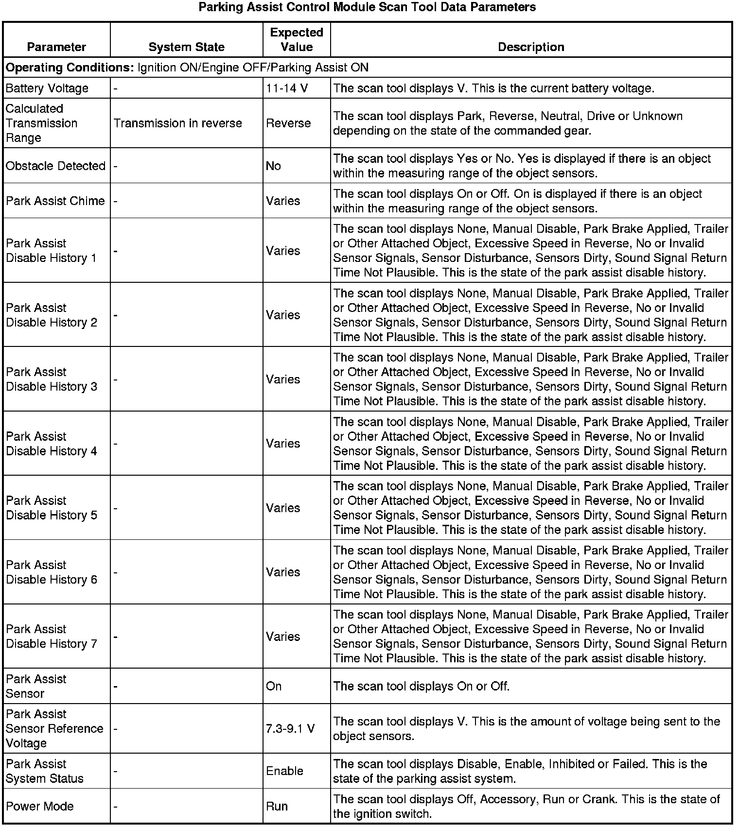 Object Alarm Module Scan Tool Information