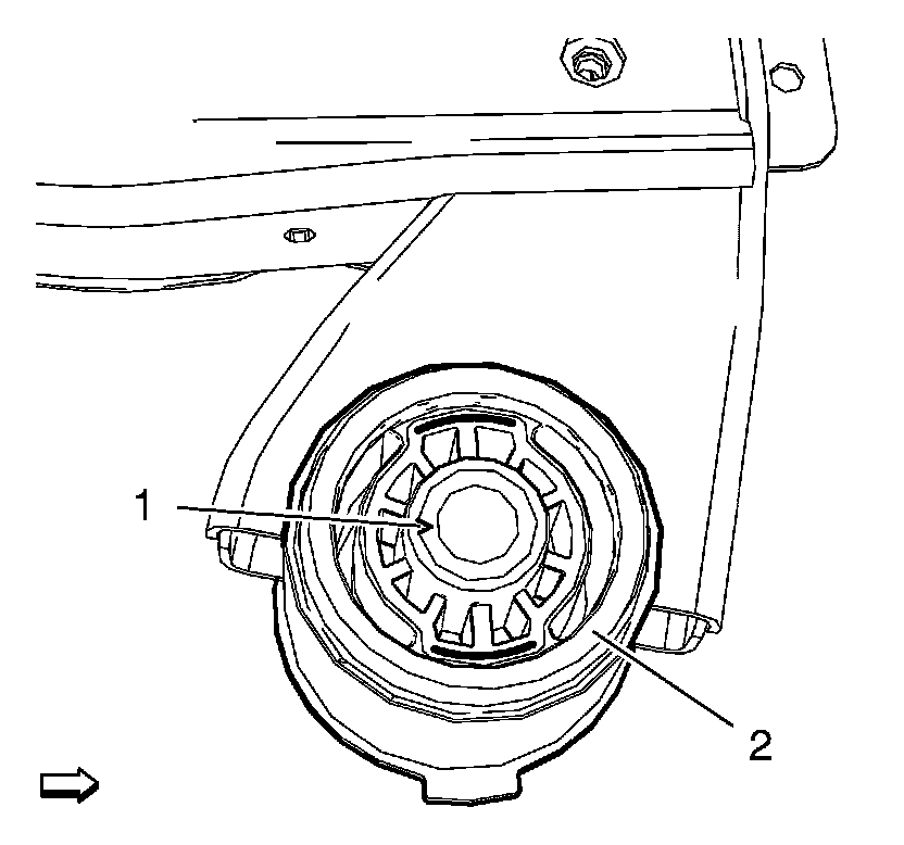1.Align the insulator tab (2) with the alignment marks (1) on the frame.