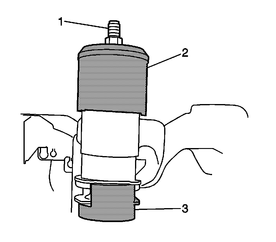 1.Position the rear suspension support bushing (1) in the rear suspension support (2).