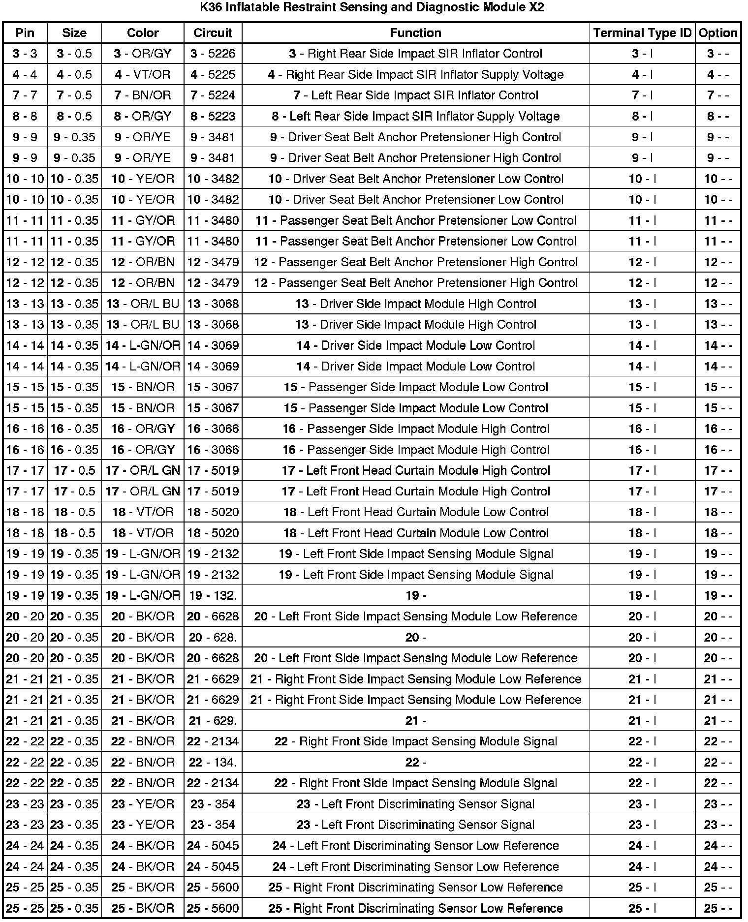 K36 Inflatable Restraint Sensing and Diagnostic Module X2