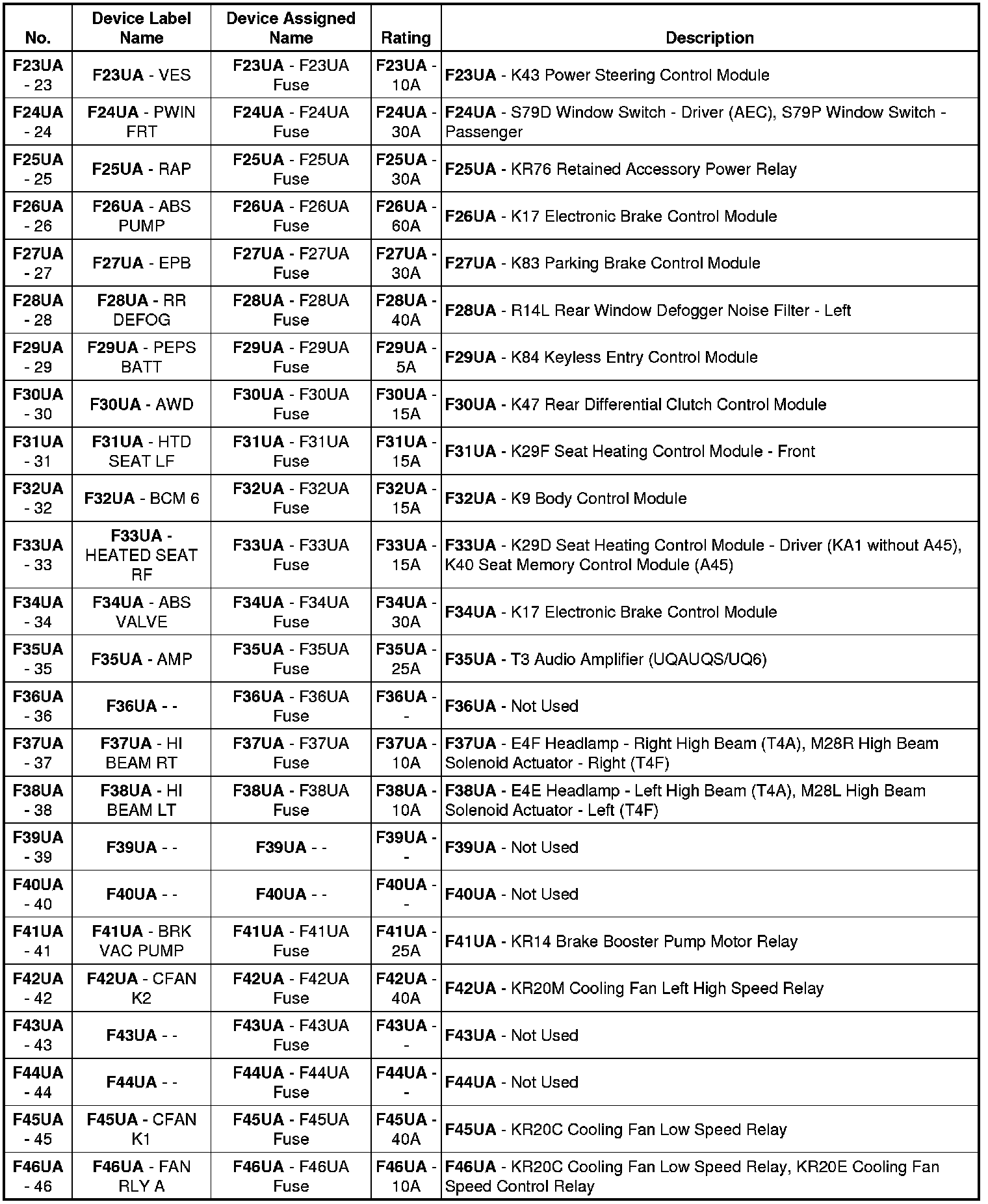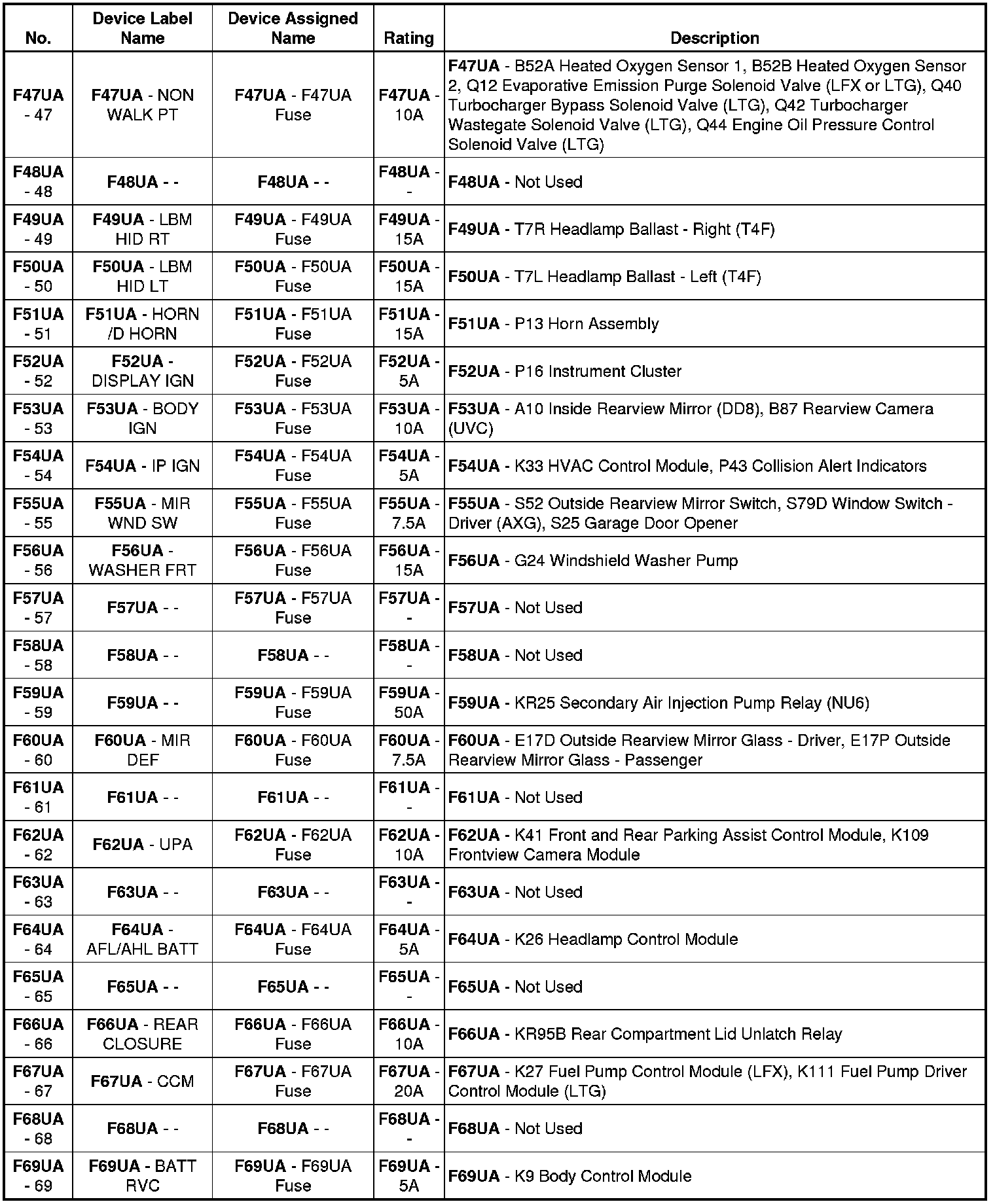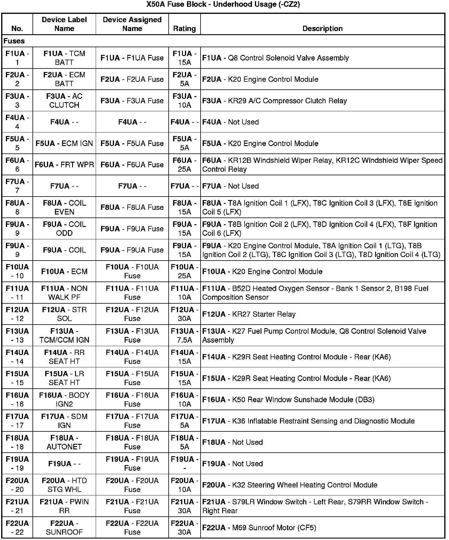 X50A Fuse Block - Underhood Label (-CZ2)