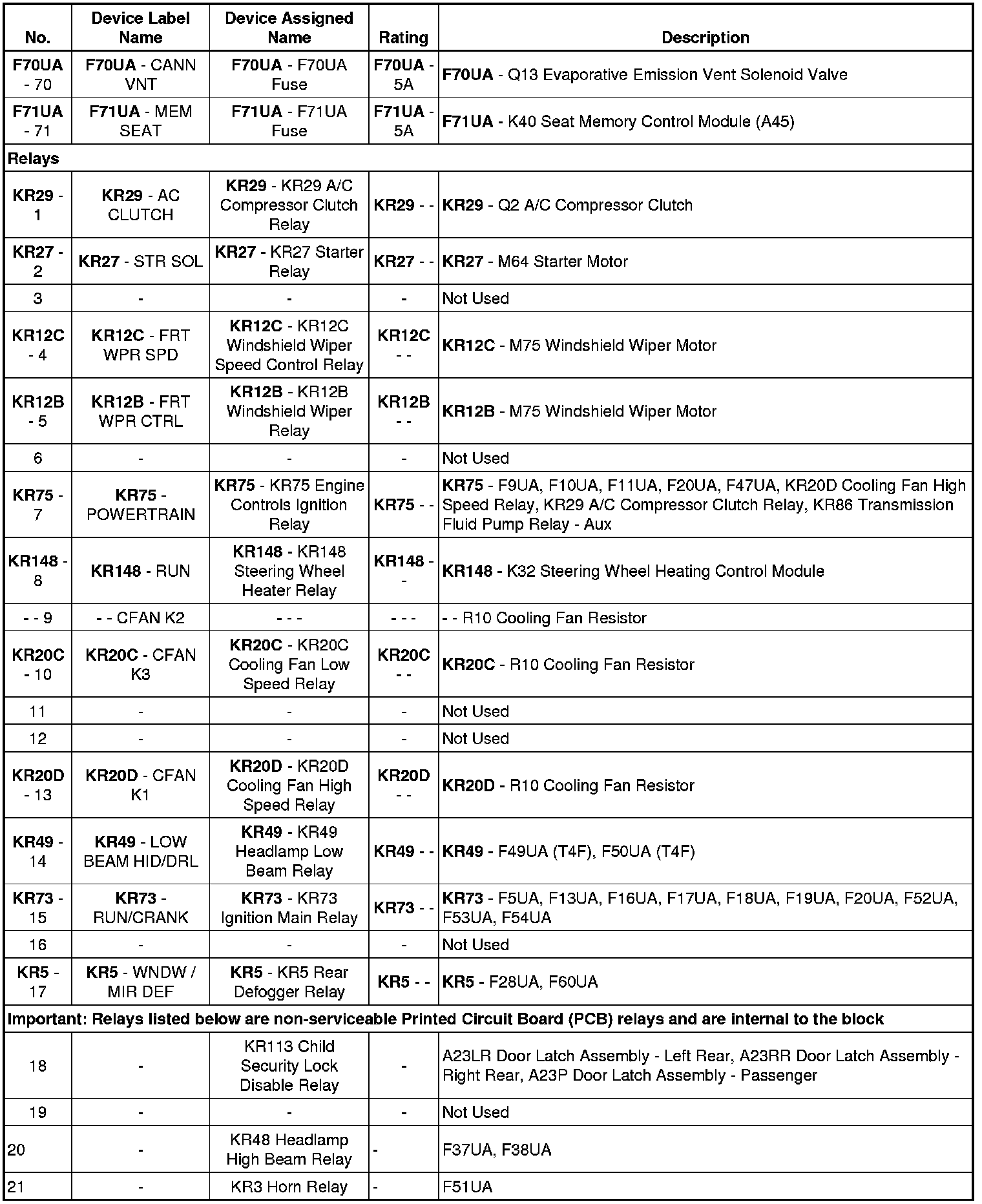 Fuse Block - Underhood Label (-CZ2)