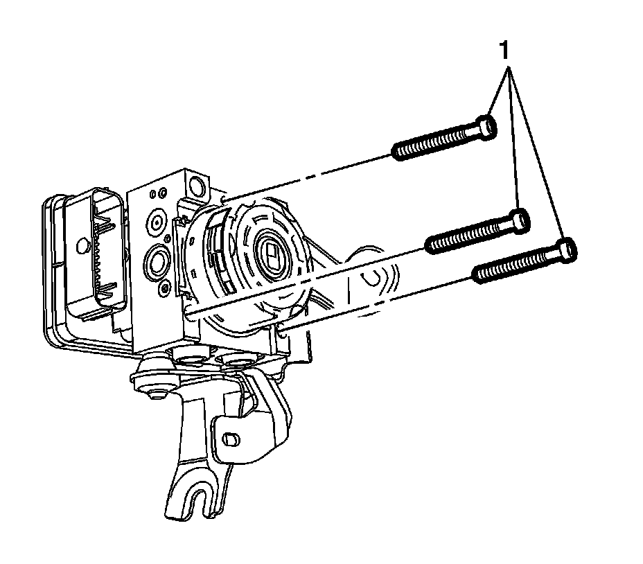 2. Remove the electronic brake control module (EBCM) bolts (1),