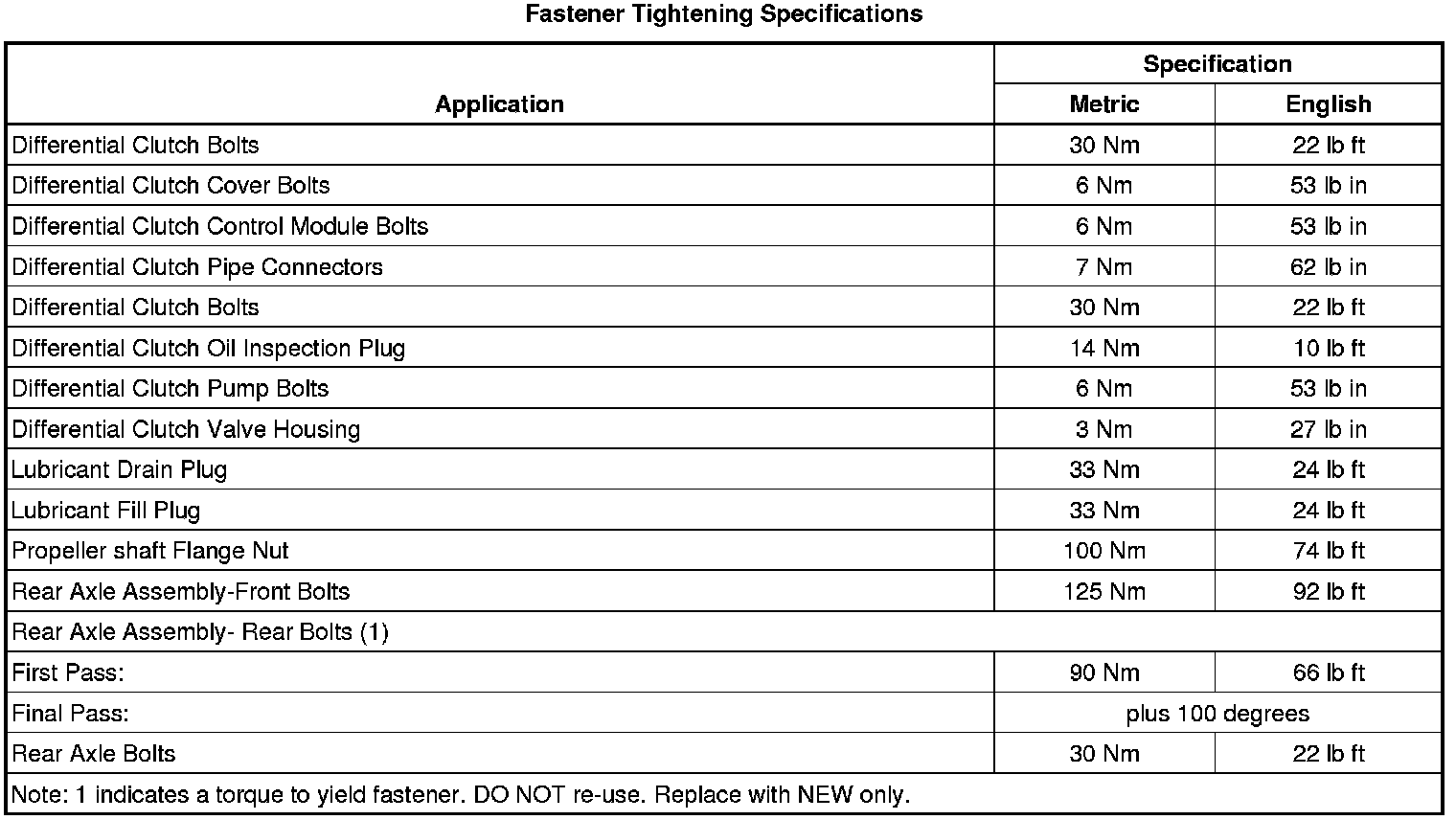 Fastener Tightening Specifications