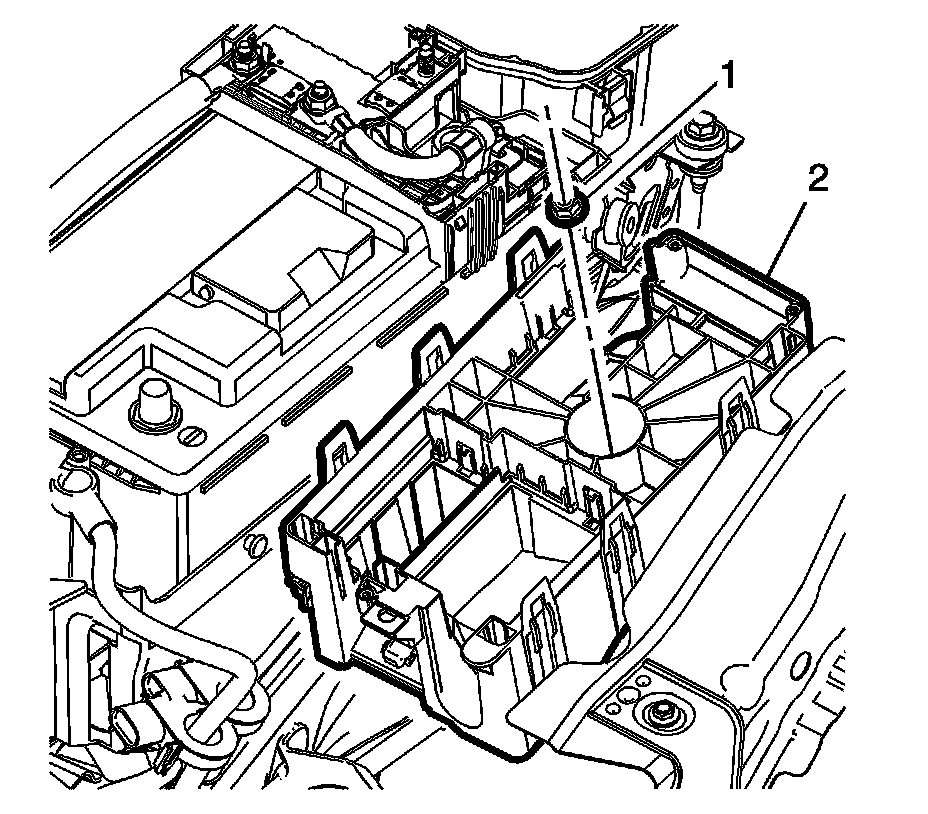 2. Position the junction block base (2) to the inner wheelhouse stud.