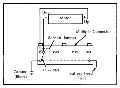 1. Using two jumper wires, connect one jumper wire end to tan wire terminal and other end of jumper wire to "DOWN" terminal (see  Fig 1 ).  Connect other jumper wire to "UP" terminal and ground (see  Fig 1 ).