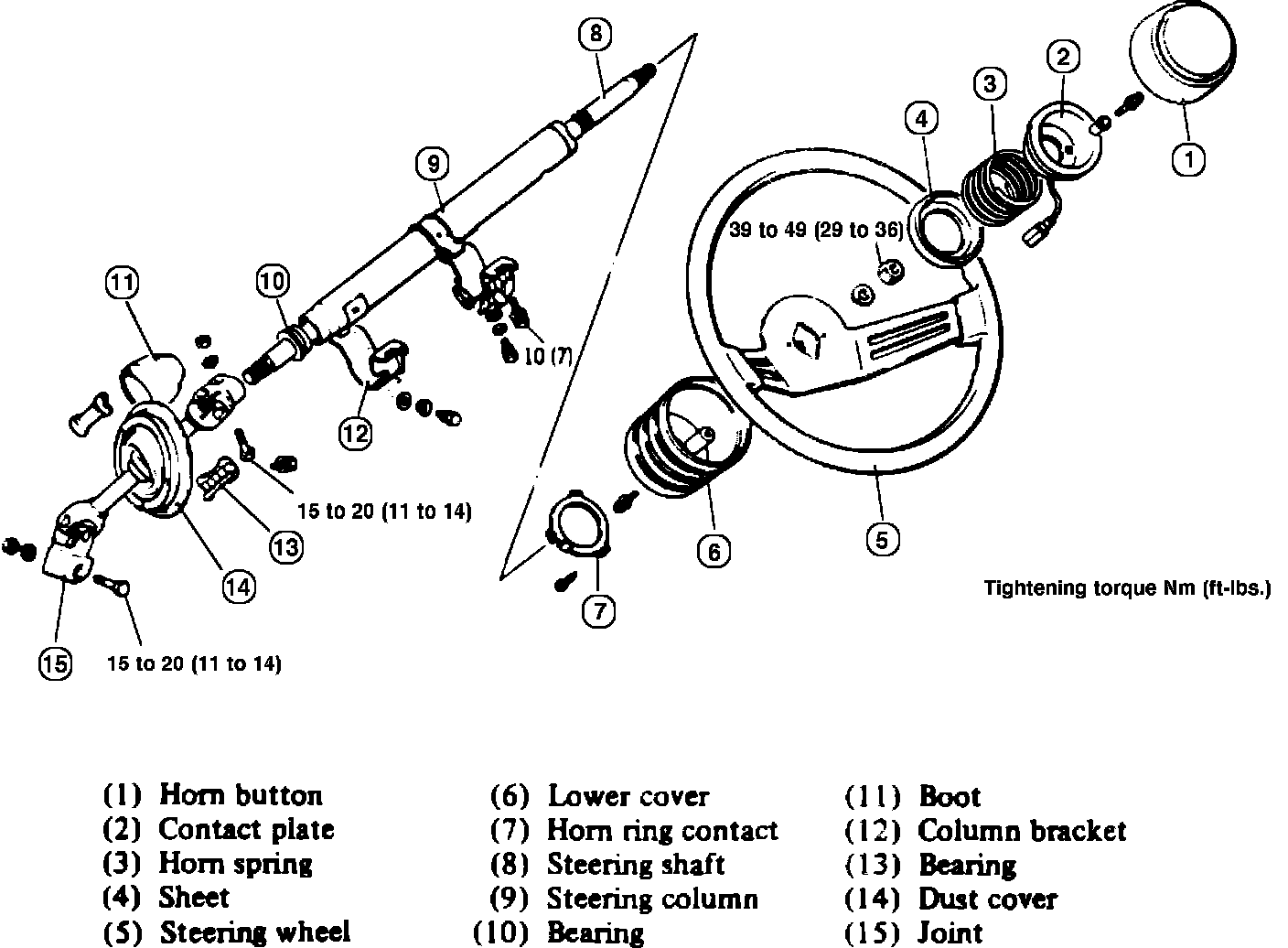 Fig. 1 Exploded view of steering column assembly. 1984 Colt Hatchback: