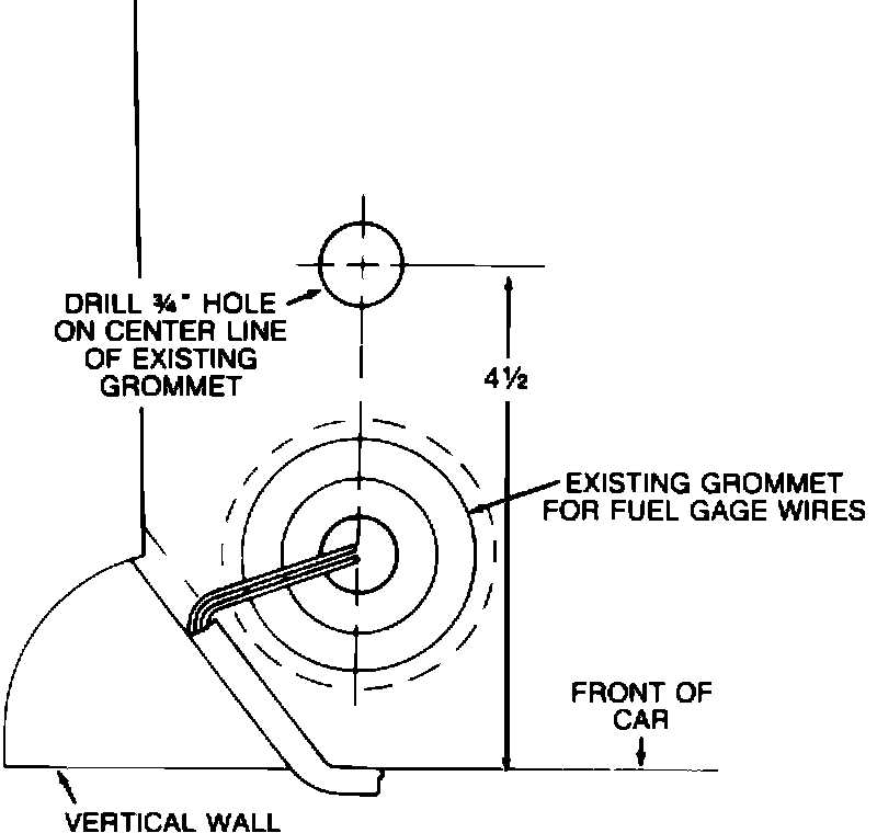10. Install and route wire assembly, PN 4331826, for electric fuel pump through inner body to grommet location hole at right rear of vehicle (Figure 2) using the following procedure: