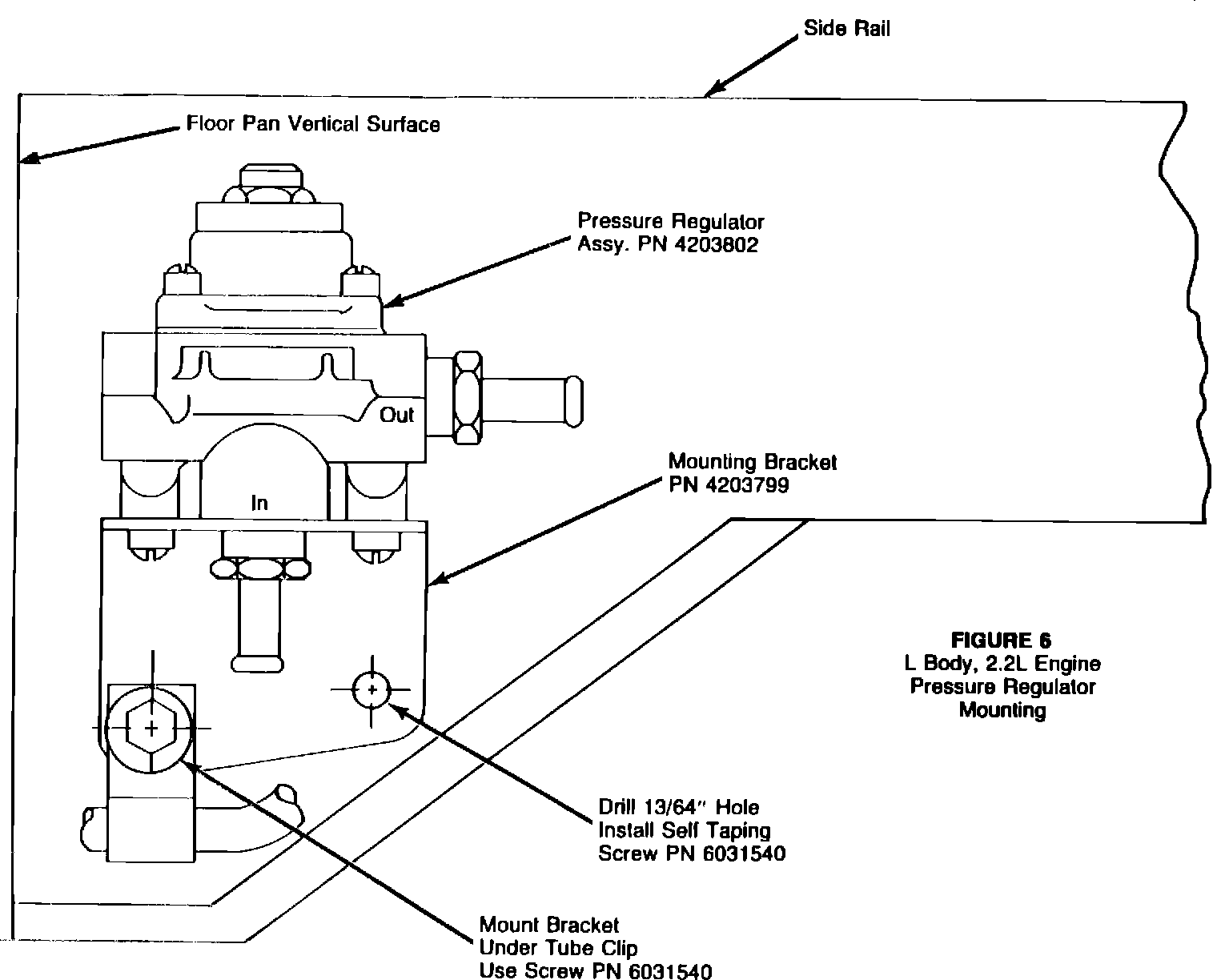 FIGURE 6 L Body, 2.2L Engine Pressure Regulator Mounting: