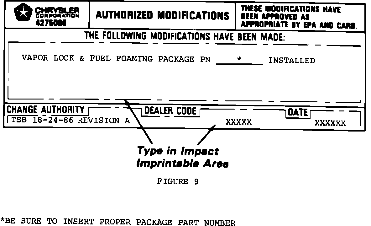 13. Type Authorized Modification Label, PN 4275086, as shown in Figure 9 with proper package part number and install next to or near the original VECI label.
