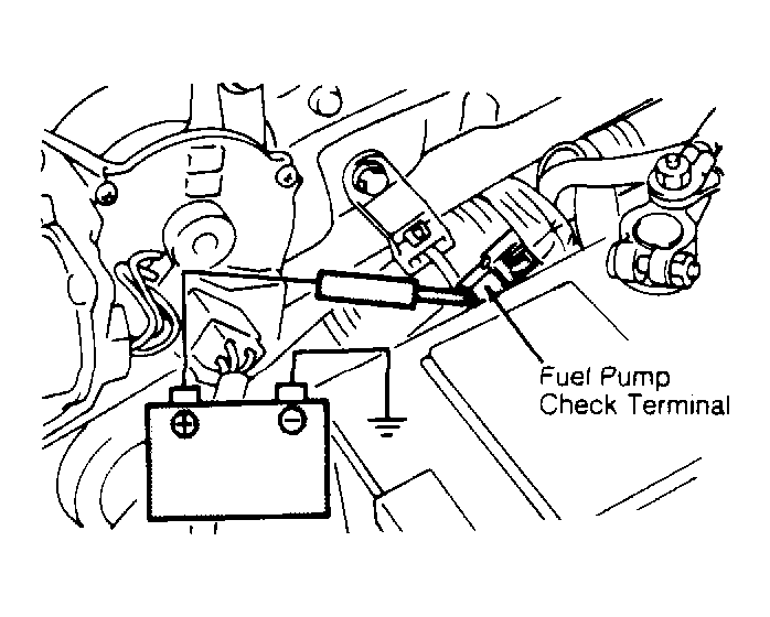 - Connect negative battery cable. To activate fuel pump, apply battery voltage to check terminal. See Fig 1 . Check for fuel leaks. Disconnect battery voltage from check terminal. Start engine and let idle.