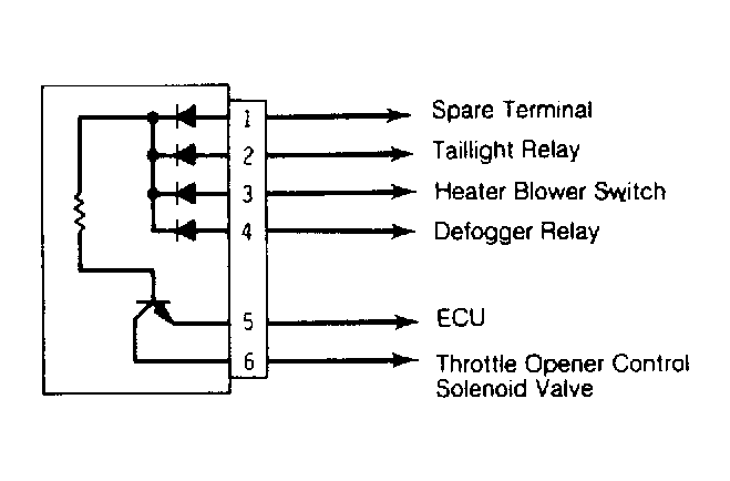 Remove electrical load switch. Using an ohmmeter, check continuity between terminals No. 1, 2, 3, 4 and 6 to terminal No. 5. See Fig 1 . Reverse leads to ensure there is no continuity between terminals. If results are otherwise, replace electrical load switch.