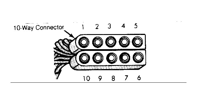 - Disconnect 10-way connector. Turn ignition switch to "RUN" position. Check voltage at terminal No. 2 of 10-way connector, using a voltmeter. If voltage is not within 1 volt of battery voltage, check wiring between terminal No. 2 of 10-way connector and ignition switch.