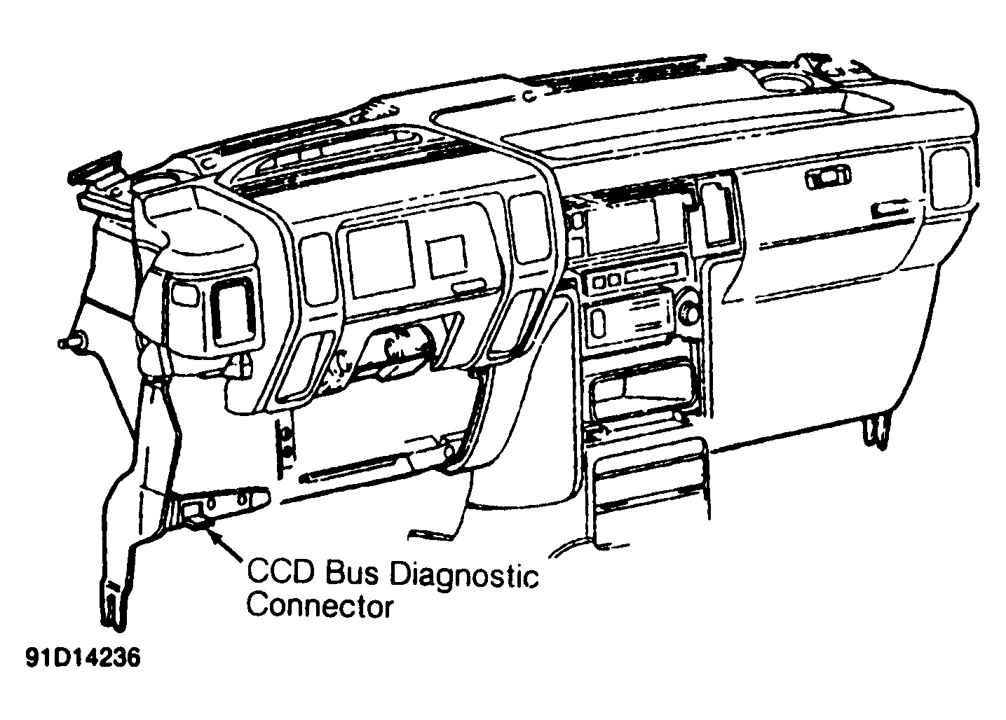 Diagnostic test procedures are designed to detect system faults as quickly as possible. Body fault codes are accessed through CCD bus diagnostic connector. See Figure. DRB-II tester is used to access information from CCD bus diagnostic connector. DRB-II tester, jumper wires and volt/ohmmeter will be needed for testing. Proceed to TEST 1A: IDENTIFYING VEHICLE EQUIPMENT & SYSTEM PROBLEMS  under SELF-DIAGNOSTIC TESTS. Ensure self-diagnostic tests apply to vehicle being tested. When system problem is identified according to customer complaint, perform indicated diagnostic test.