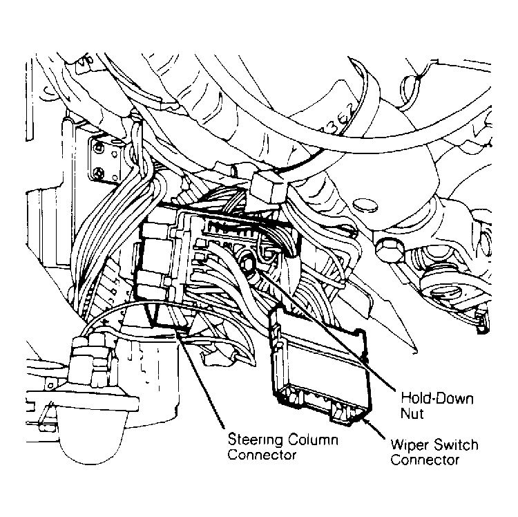 2. Separate steering column harness connector from steering column connector. Separate left and right switch control module connectors from main steering column connector. Disconnect wiper switch connector. See Figure. Remove steering column lower cover.