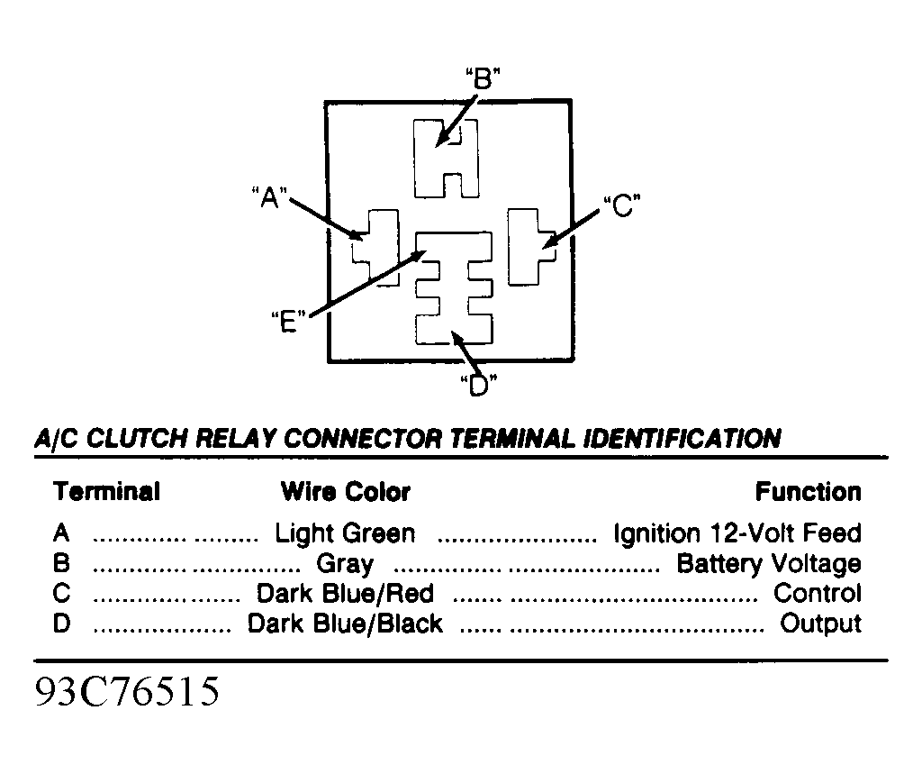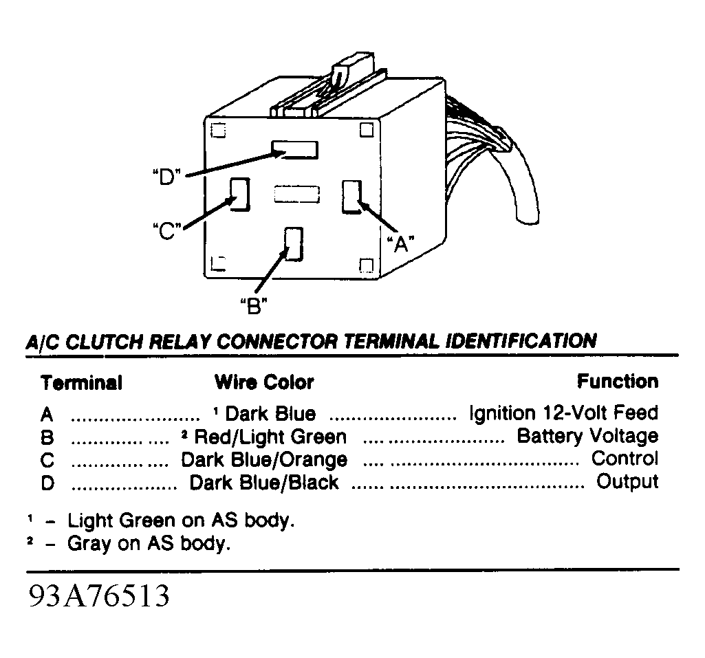 Courtesy of CHRYSLER CORP. A/C CLUTCH RELAY CONNECTOR TERMINAL ID (EXCEPT DAKOTA)