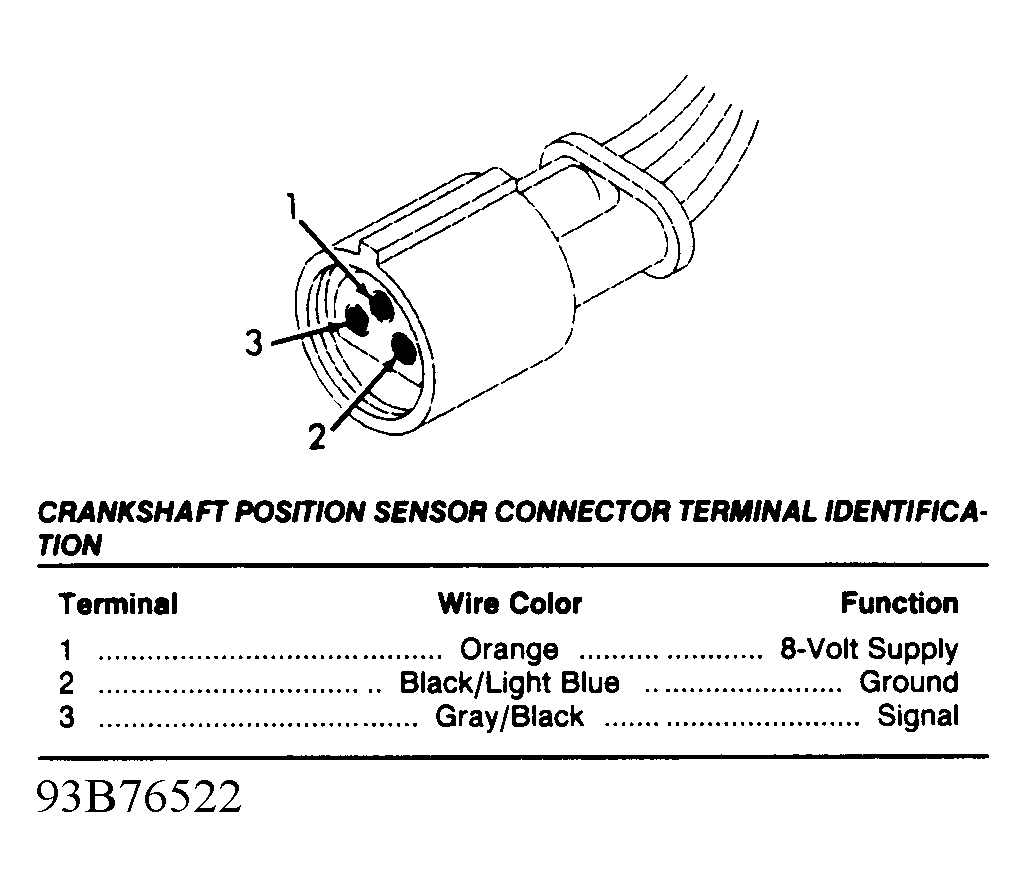 Courtesy of CHRYSLER CORP. CRANKSHAFT POSITION SENSOR CONNECTOR TERMINAL IDENTIFICATION