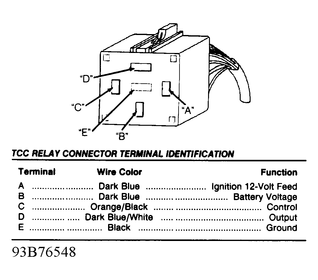 Courtesy of CHRYSLER CORP. TCC RELAY CONNECTOR TERMINAL IDENTIFICATION