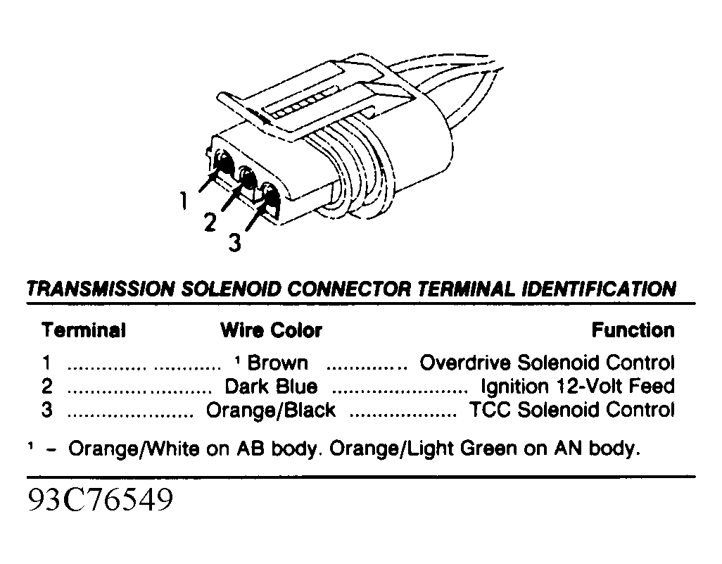 Courtesy of CHRYSLER CORP. TCC SOLENOID CONNECTOR TERMINAL IDENTIFICATION