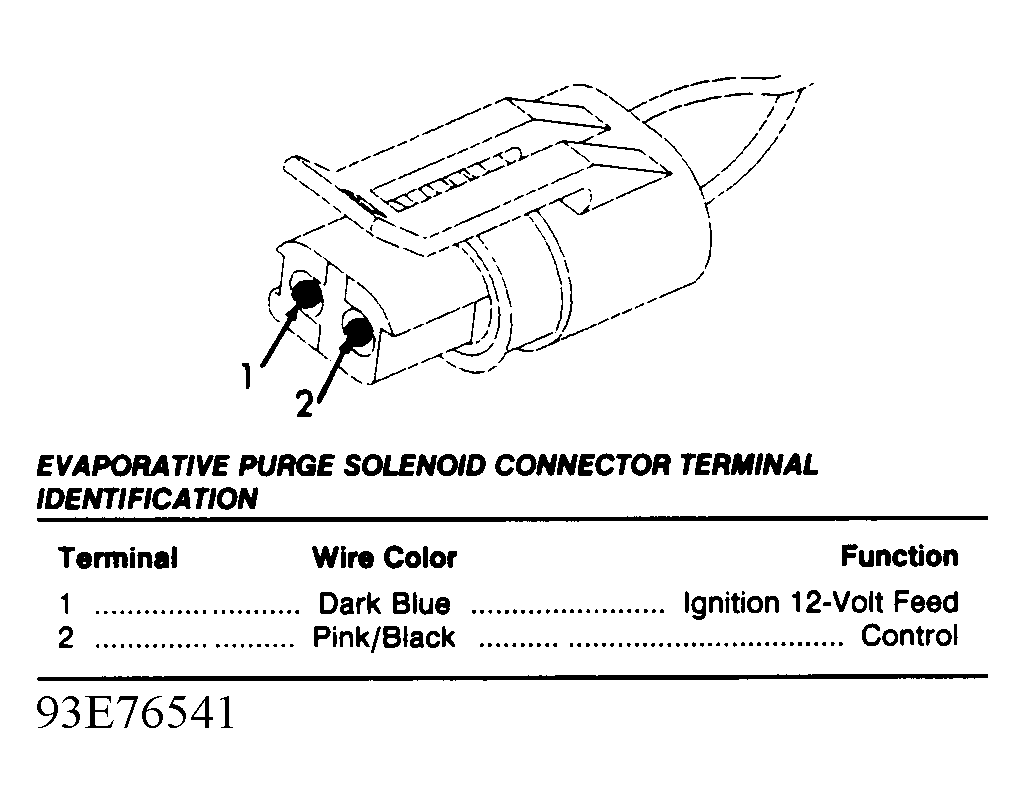 Courtesy of CHRYSLER CORP. EVAPORATIVE PURGE SOLENOID CONNECTOR TERMINAL IDENTIFICATION