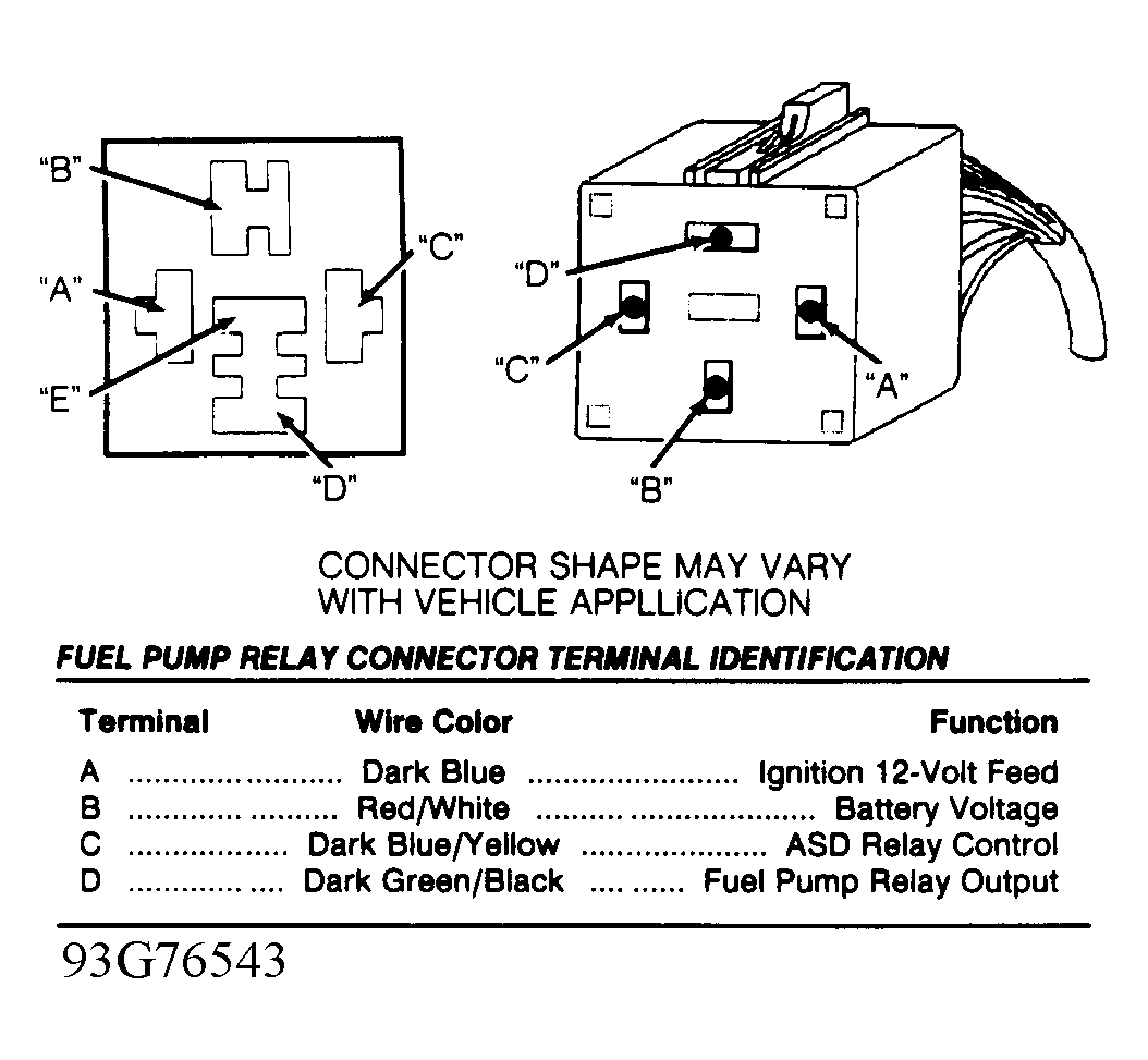 Courtesy of CHRYSLER CORP. ASD RELAY CONNECTOR TERMINAL IDENTIFICATION