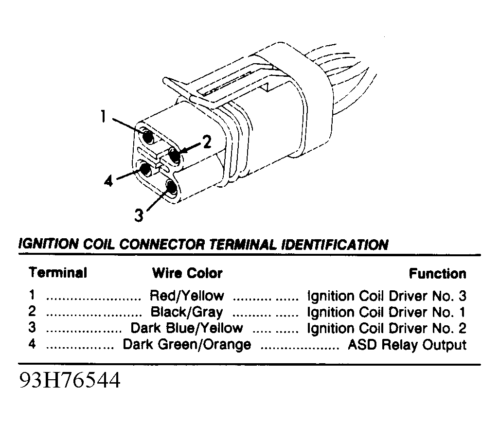 Courtesy of CHRYSLER CORP. IGNITION COIL CONNECTOR TERMINAL IDENTIFICATION