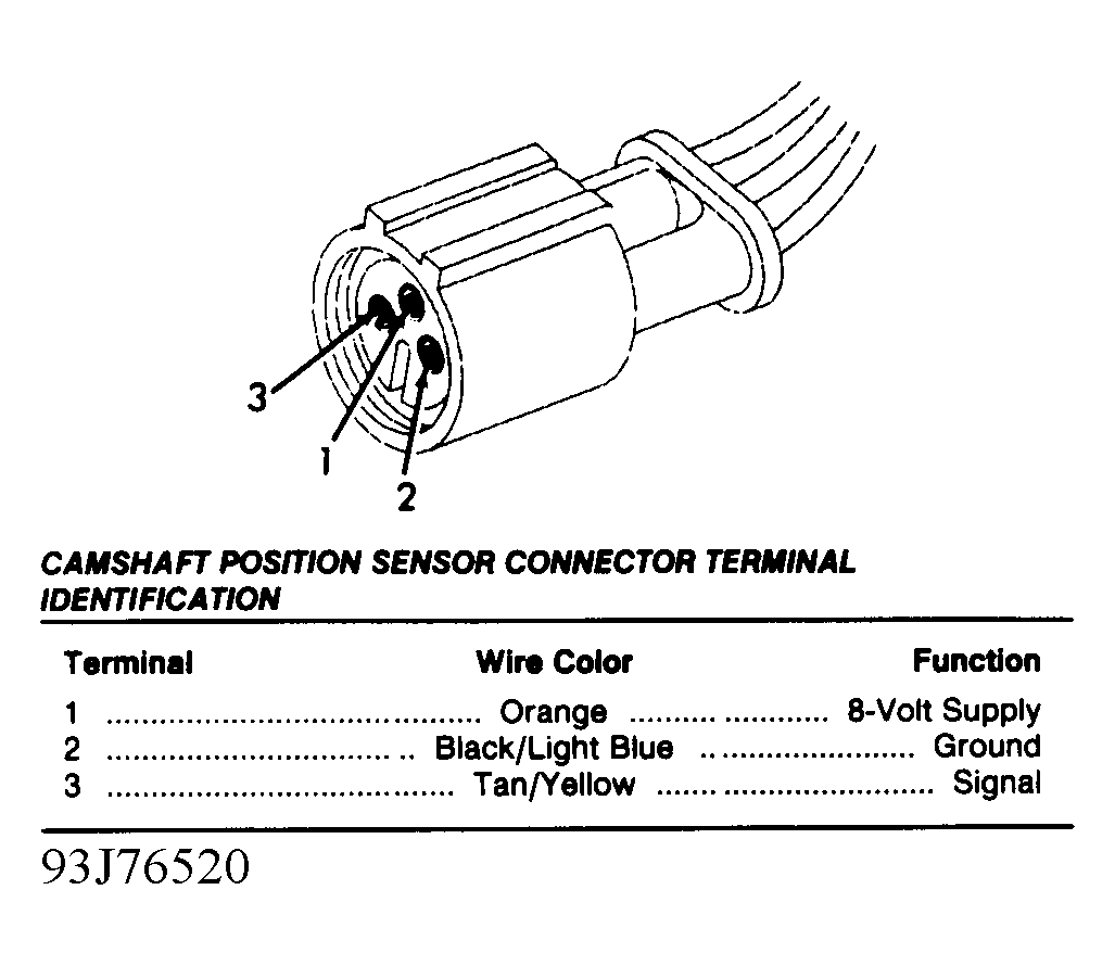 Courtesy of CHRYSLER CORP. CAMSHAFT POSITION SENSOR CONNECTOR TERMINAL IDENTIFICATION