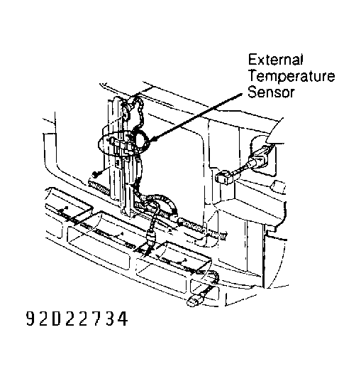 - If compass/mini-trip screen displays "OC" in step 1), turn ignition switch to OFF position. Disconnect external temperature sensor. Check connector, and clean or repair connector as necessary. Connect a jumper wire between external temperature sensor connector terminals. Turn ignition switch to ON position.