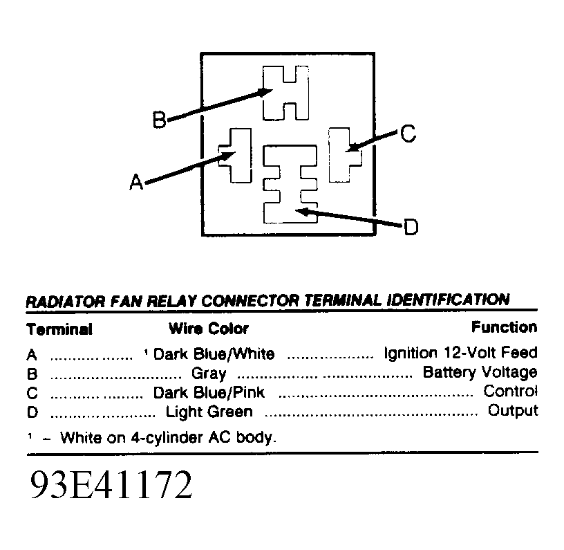 RADIATOR FAN RELAY CONNECTOR TERMINAL IDENTIFICATION (3.3L)