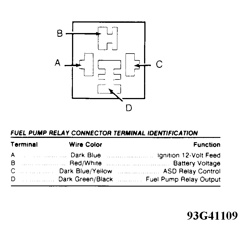 FUEL PUMP RELAY CONNECTOR TERMINAL IDENTIFICATION
