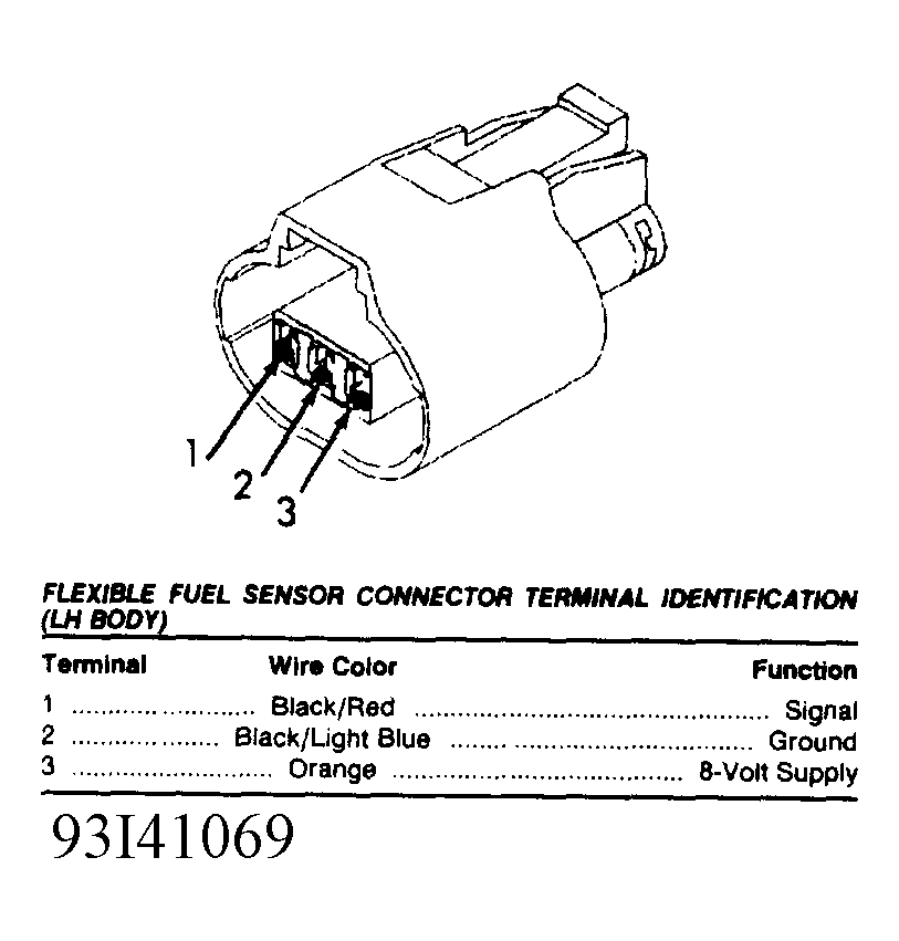 FLEXIBLE FUEL SENSOR CONNECTOR TERMINAL IDENTIFICATION (LH BODY)