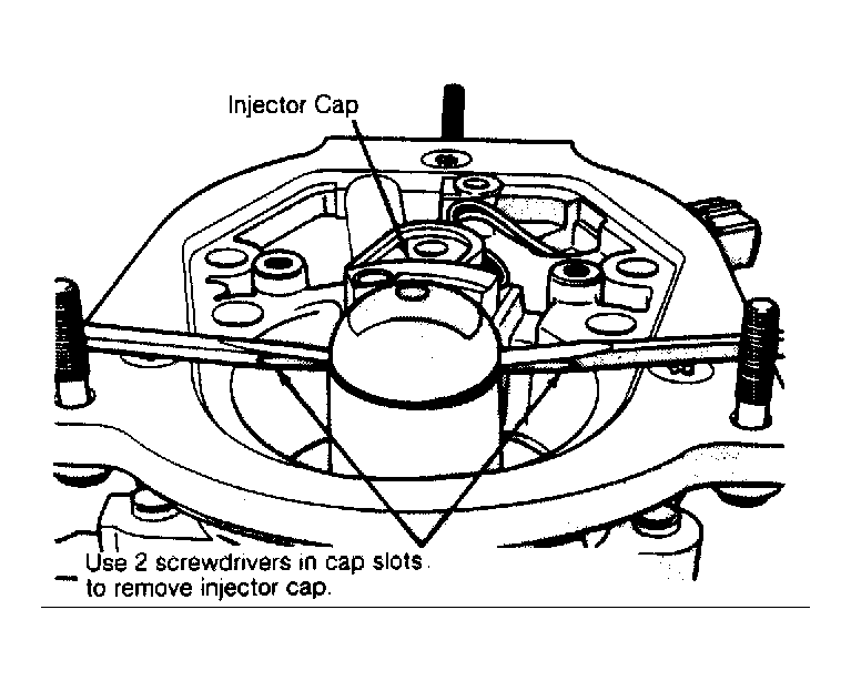 - With 2 small screwdrivers, lift top off injector using slots provided. See Fig 1 . Using a small screwdriver placed in hole in front of electrical connector, gently pry injector from body. Ensure lower "O" ring has been removed from body.