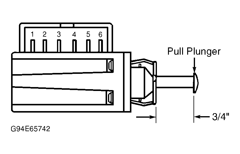 Disconnect brake switch 6-pin connector. Using an ohmmeter, check for continuity at brake switch. See Fig 1 . If continuity is not as specified in BRAKE SWITCH CONTINUITY tables, check brake switch adjustment. If brake switch adjustment is okay, replace defective brake switch.