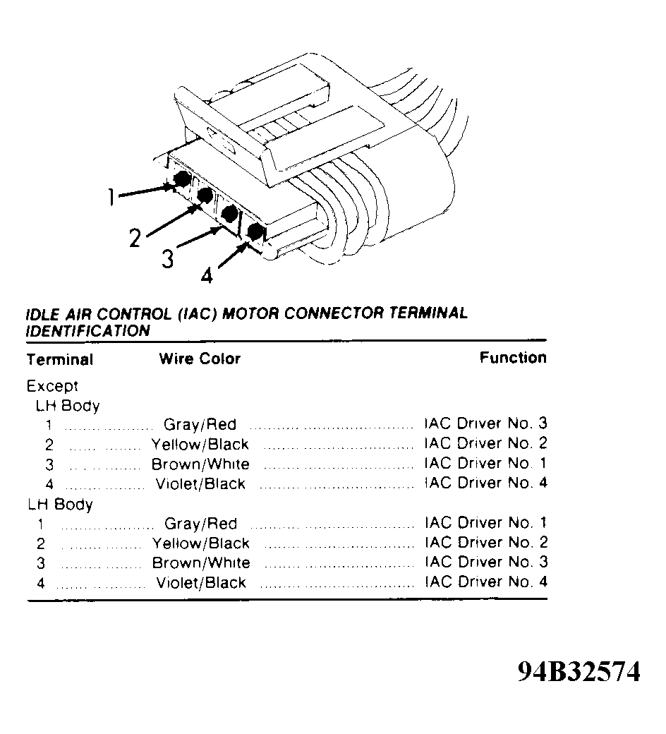 IDLE AIR CONTROL (IAC) MOTOR CONNECTOR TERMINAL ID