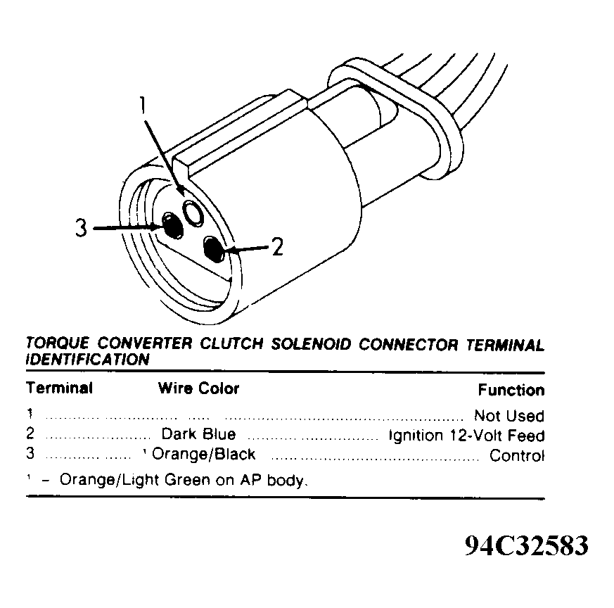 TORQUE CONVERTER CLUTCH SOLENOID CONNECTOR TERMINAL ID