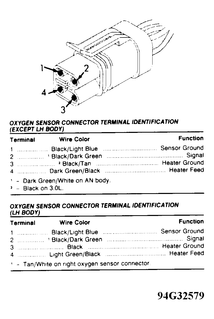 OXYGEN SENSOR CONNECTOR TERMINAL ID