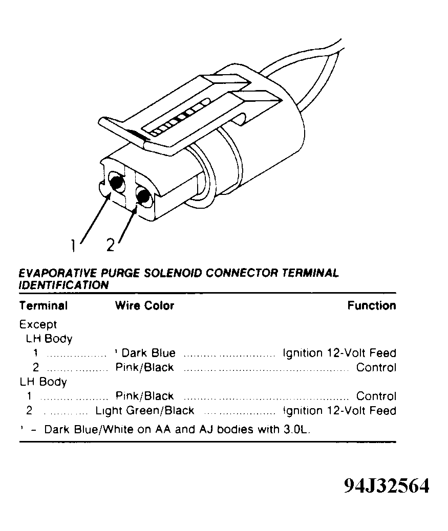 EVAPORATIVE PURGE SOLENOID CONNECTOR TERMINAL ID