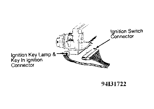 1. Disconnect key in ignition switch connector. See Figure . Connect a jumper wire between key in ignition switch connector Light Blue and Black/Orange wires. If DRB displays KEY IN IGN : CLOSED, replace ignition switch. If DRB does not display KEY IN IGN : CLOSED, go to next step.