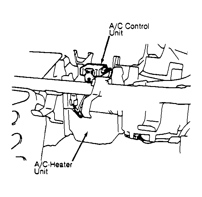 - A/C control unit is located above A/C-heater unit. See Fig 1 . Disconnect A/C control unit electrical connector. Turn on ignition and A/C switch (Green light). Set temperature control lever to maximum cool and blower switch to high position.