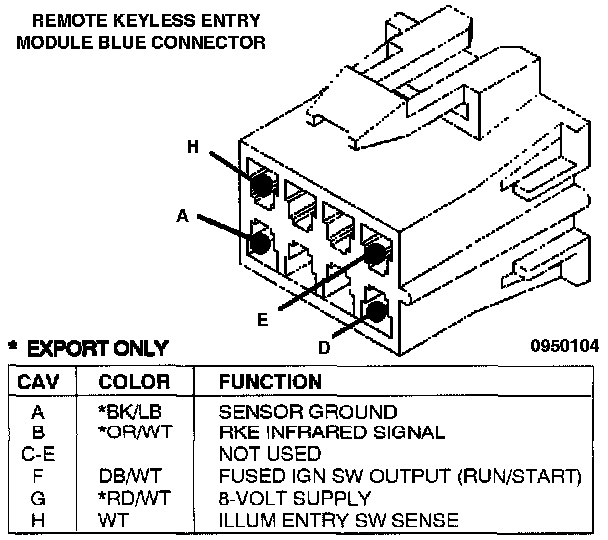 Remote Keyless Entry (RKE) Module Blue Connector: