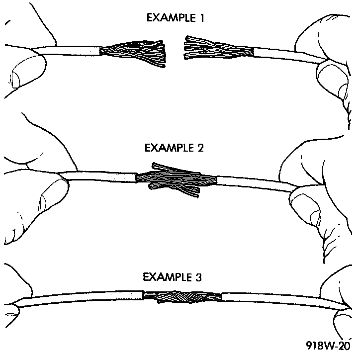 5. Push the two ends of wire together until the strands of wire are close to the insulation (Example 2).