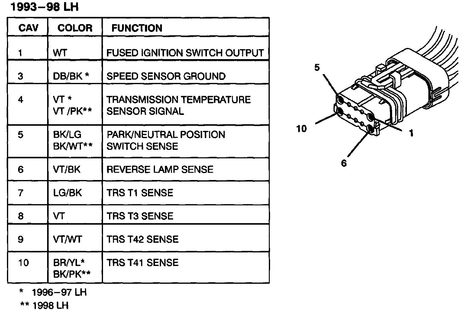 Transmission Position Sensor/Switch: Diagrams