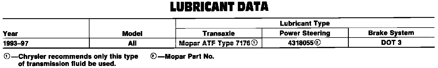 Lubricant Data: