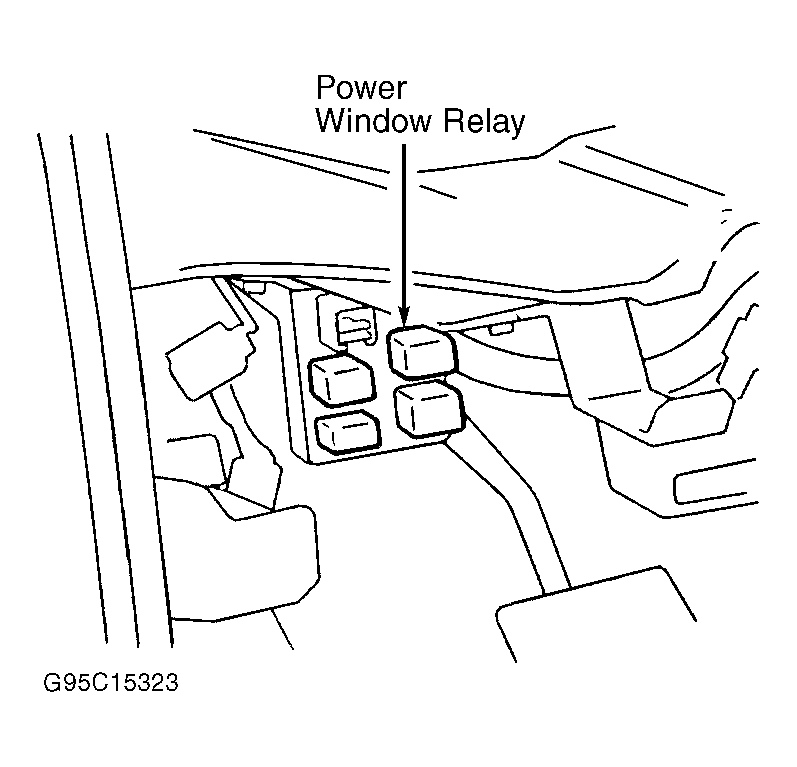 - Remove power window relay from fuse/relay block located under dash panel at left side of vehicle. See Fig 1